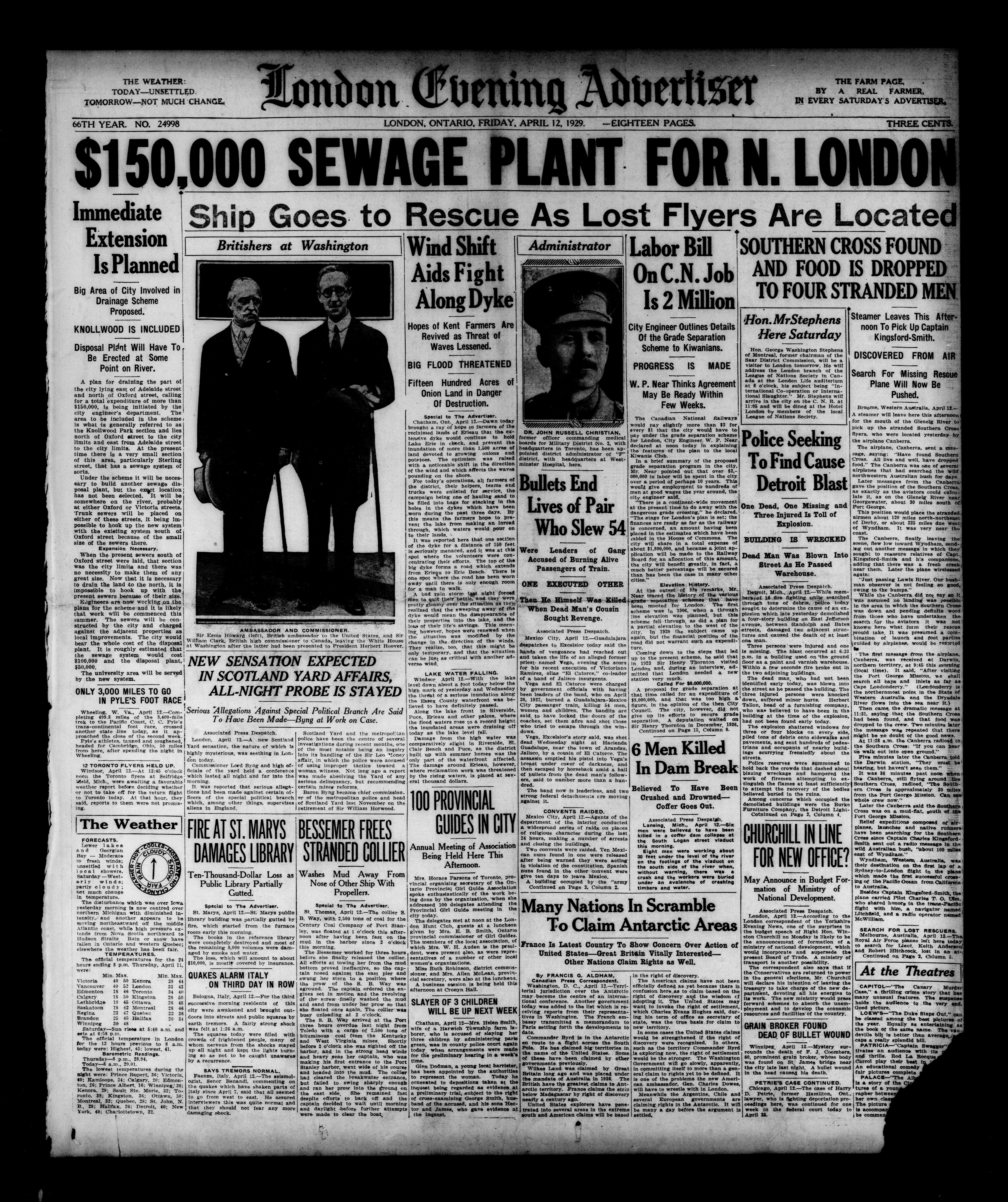 London Evening Advertiser. : London evening advertiser : 66th Year, No. 24998 (April 12, 1929)