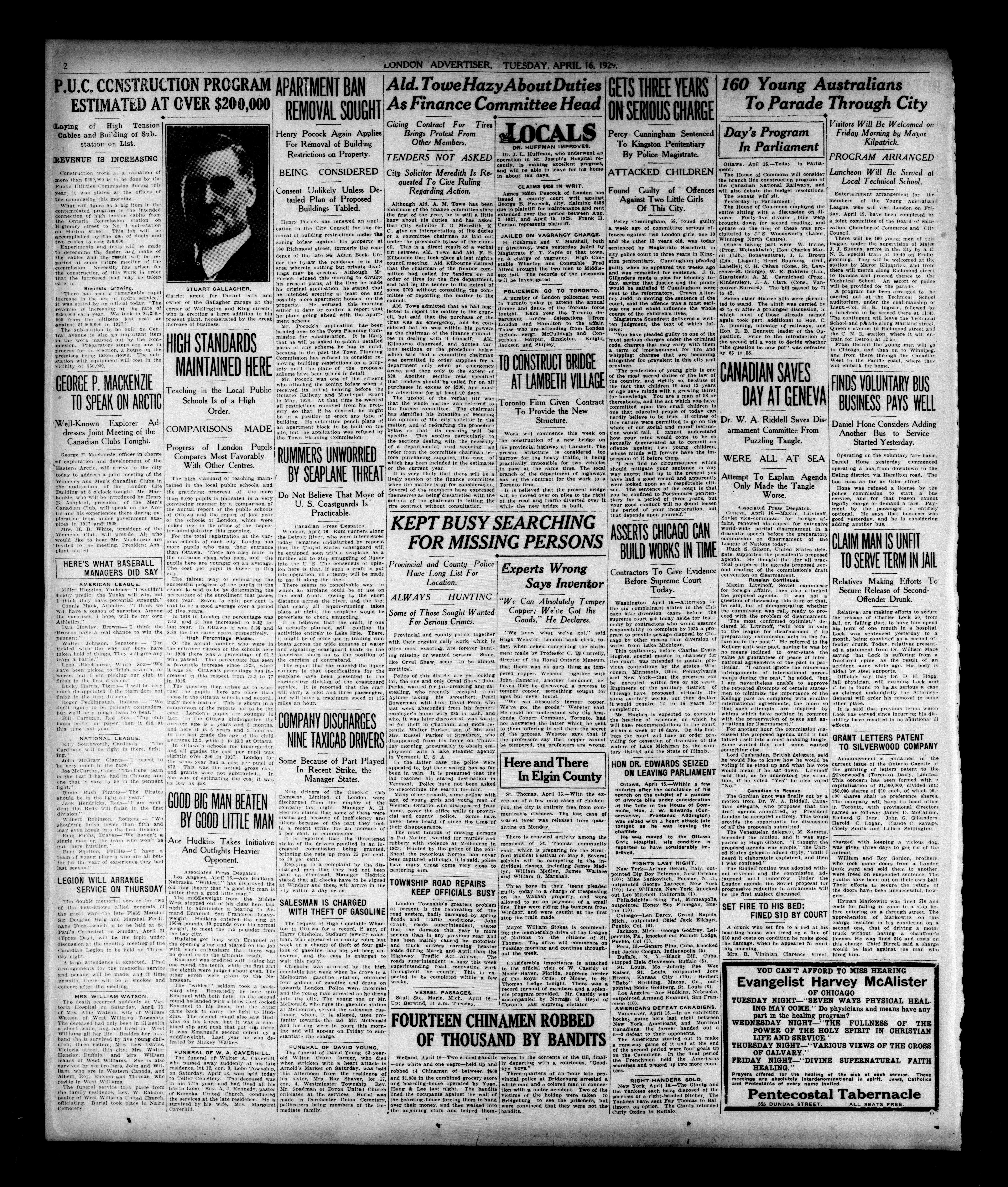London, Ontario : London Advertiser Company, Limited, [1929]; 16 images, 0 with full-text search