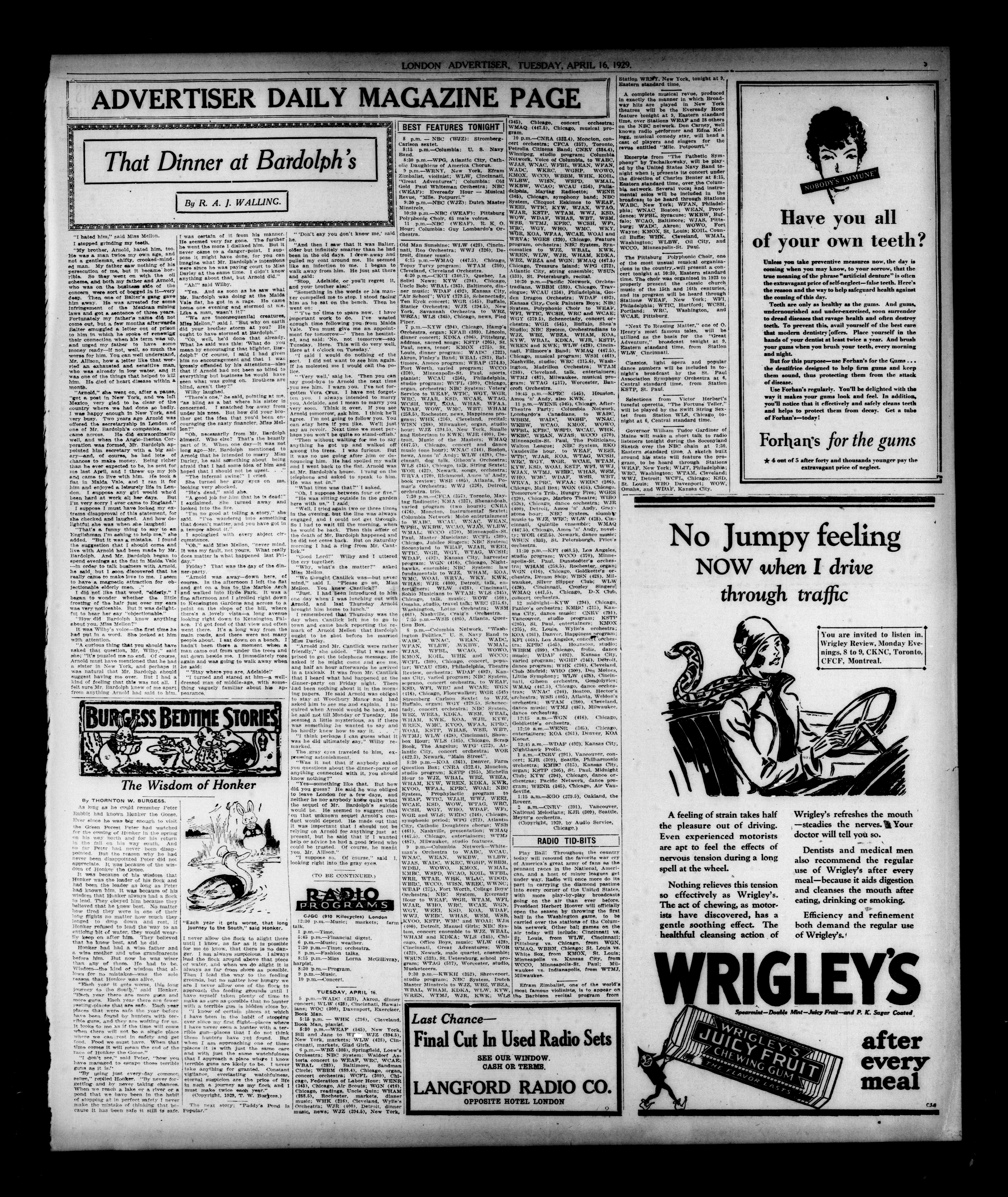 London, Ontario : London Advertiser Company, Limited, [1929]; 16 images, 0 with full-text search