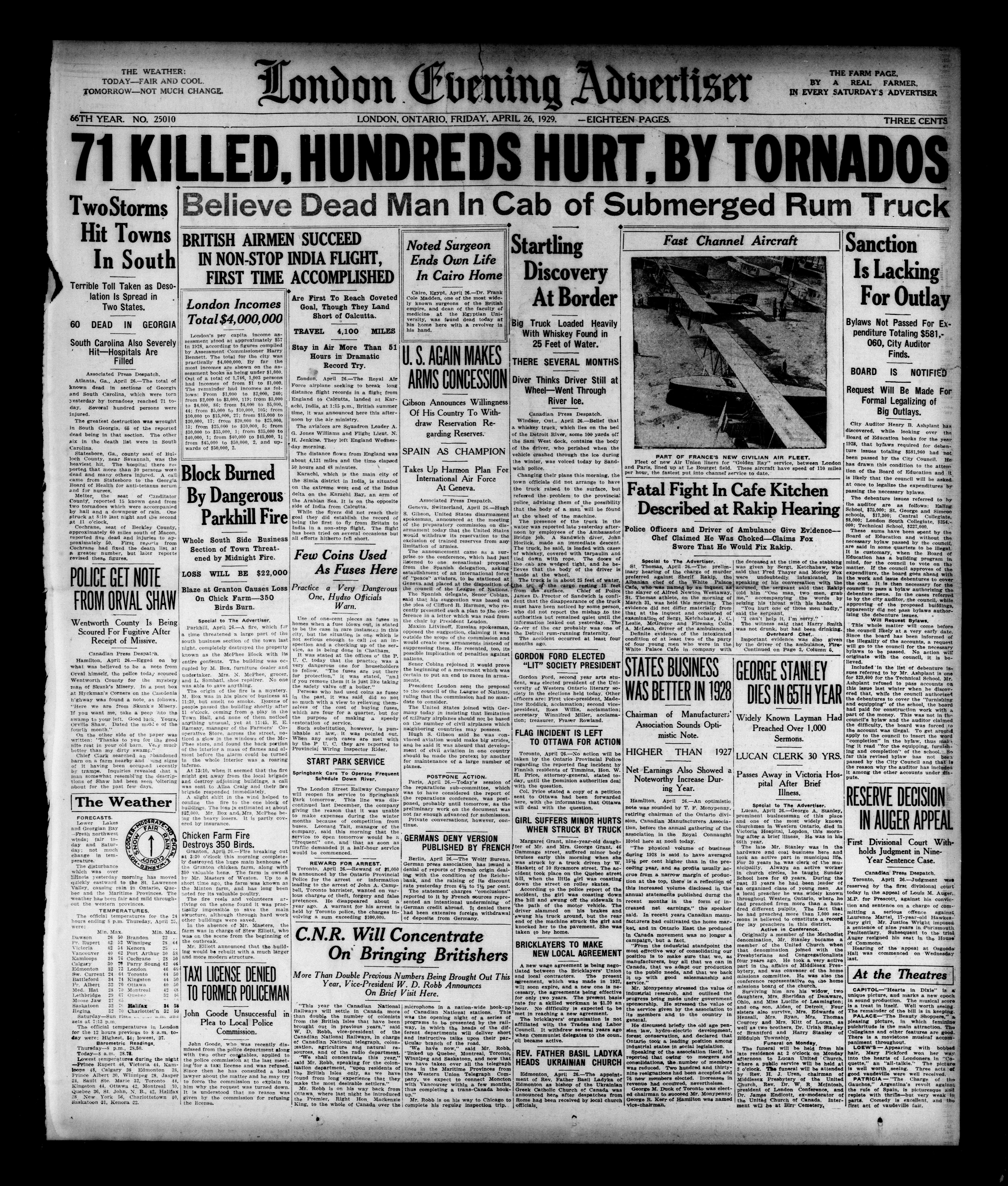 London Evening Advertiser. : London evening advertiser : 66th Year, No. 25010 (April 26, 1929)