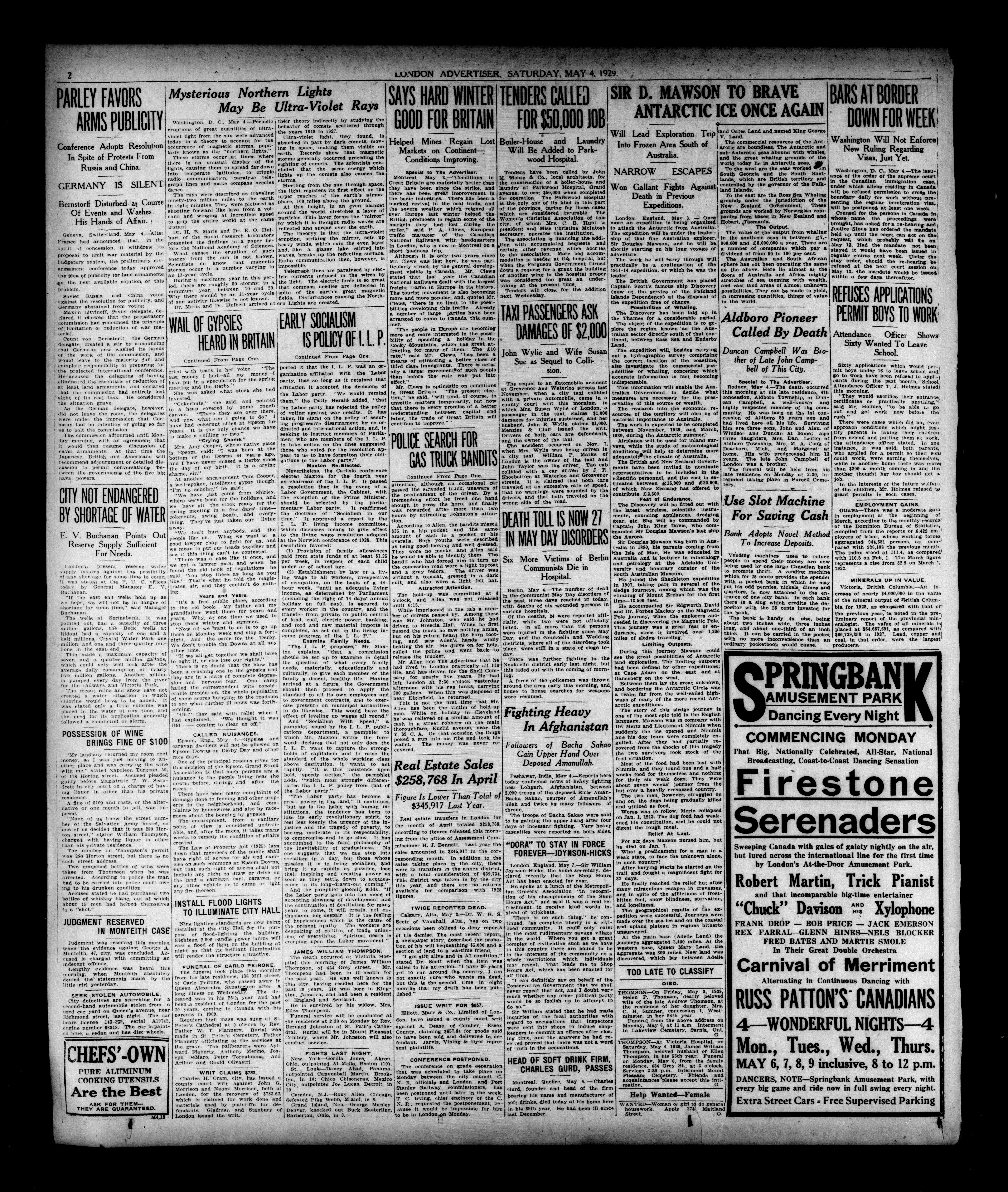 London, Ontario : London Advertiser Company, Limited, [1929]; 20 images, 0 avec recherche en texte intégral