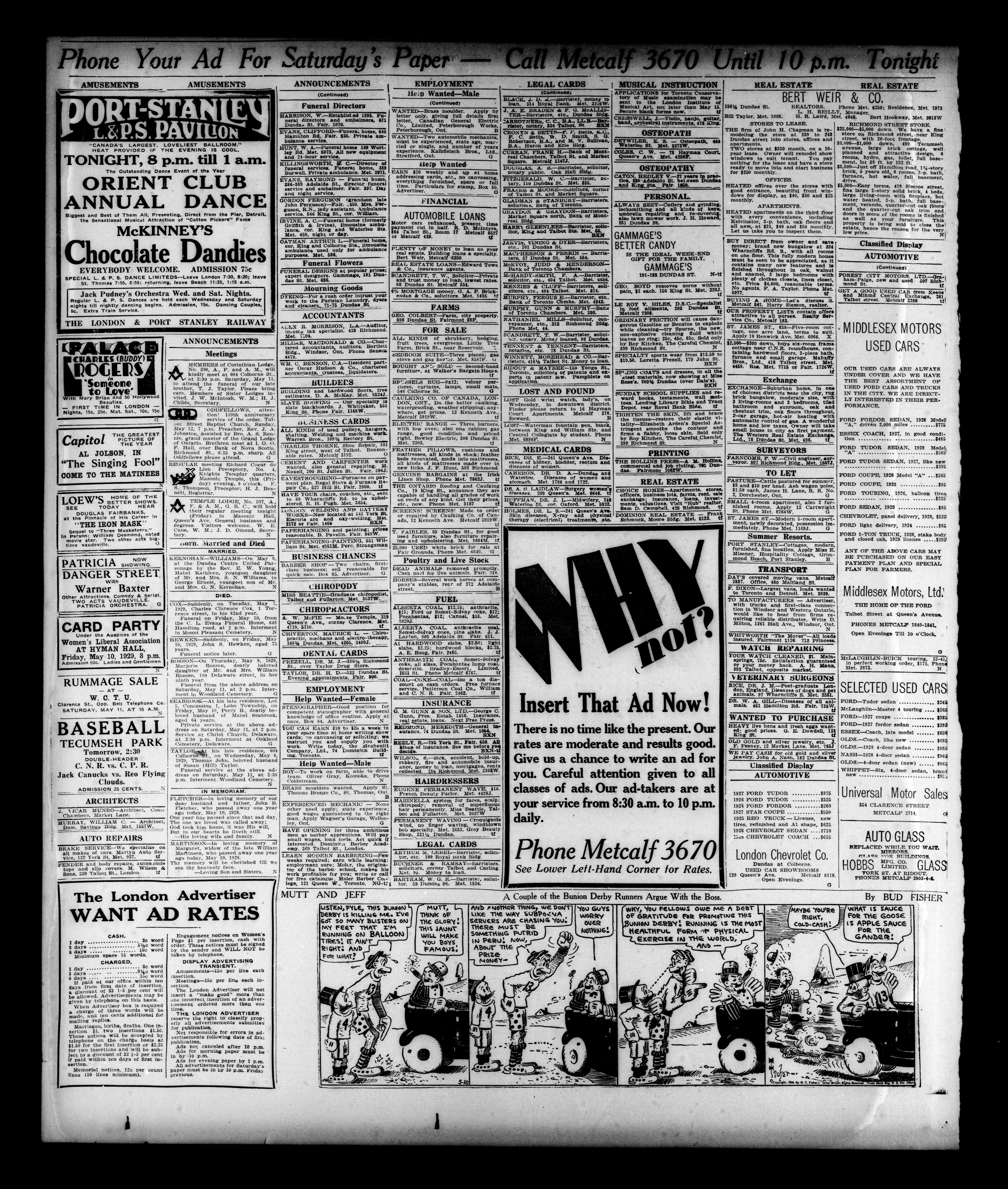 London, Ontario : London Advertiser Company, Limited, [1929]; 18 images, 0 avec recherche en texte intégral