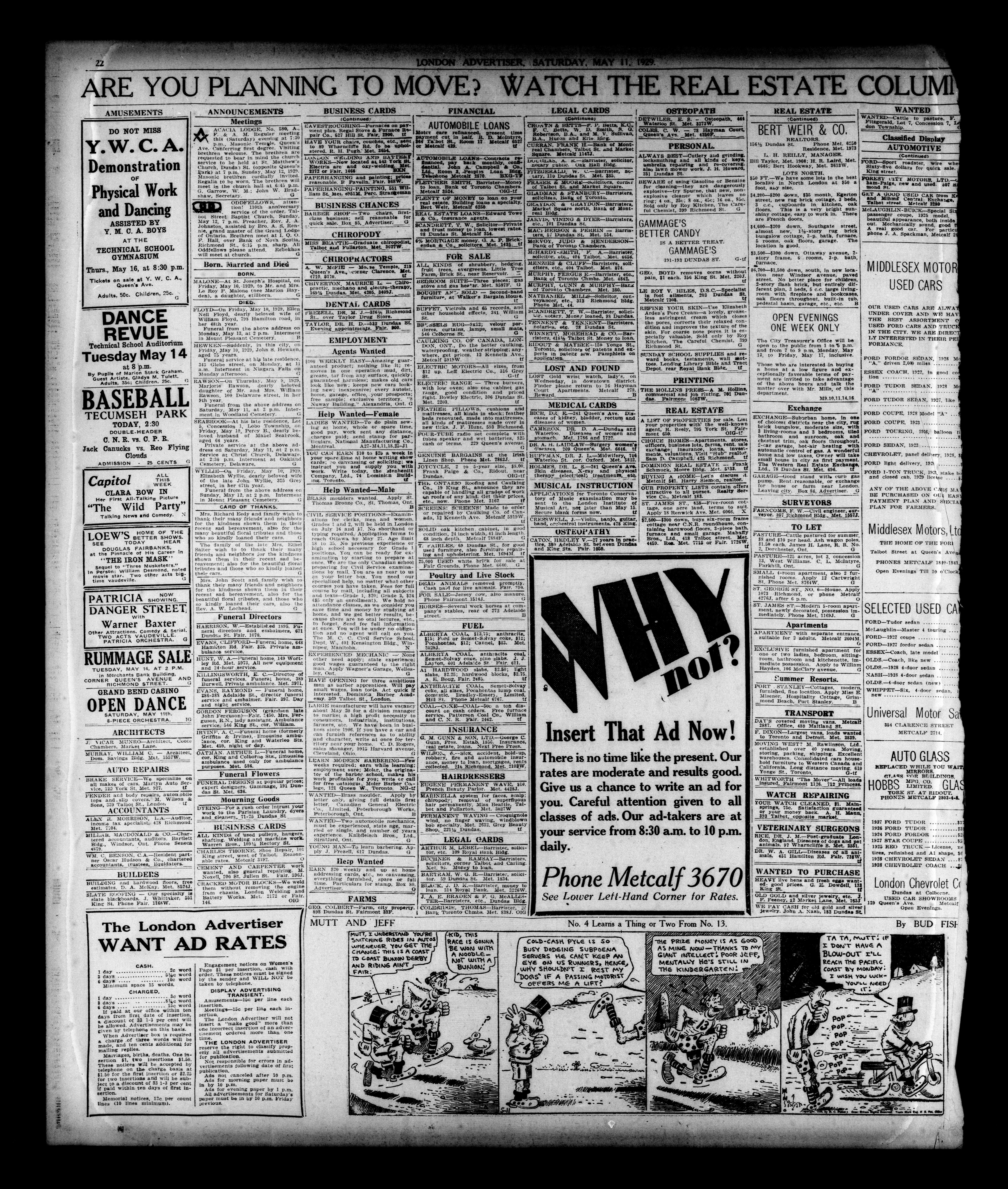 Aide London, Ontario : London Advertiser Company, Limited, [1929]; 26 images, 0 avec recherche en texte intégral