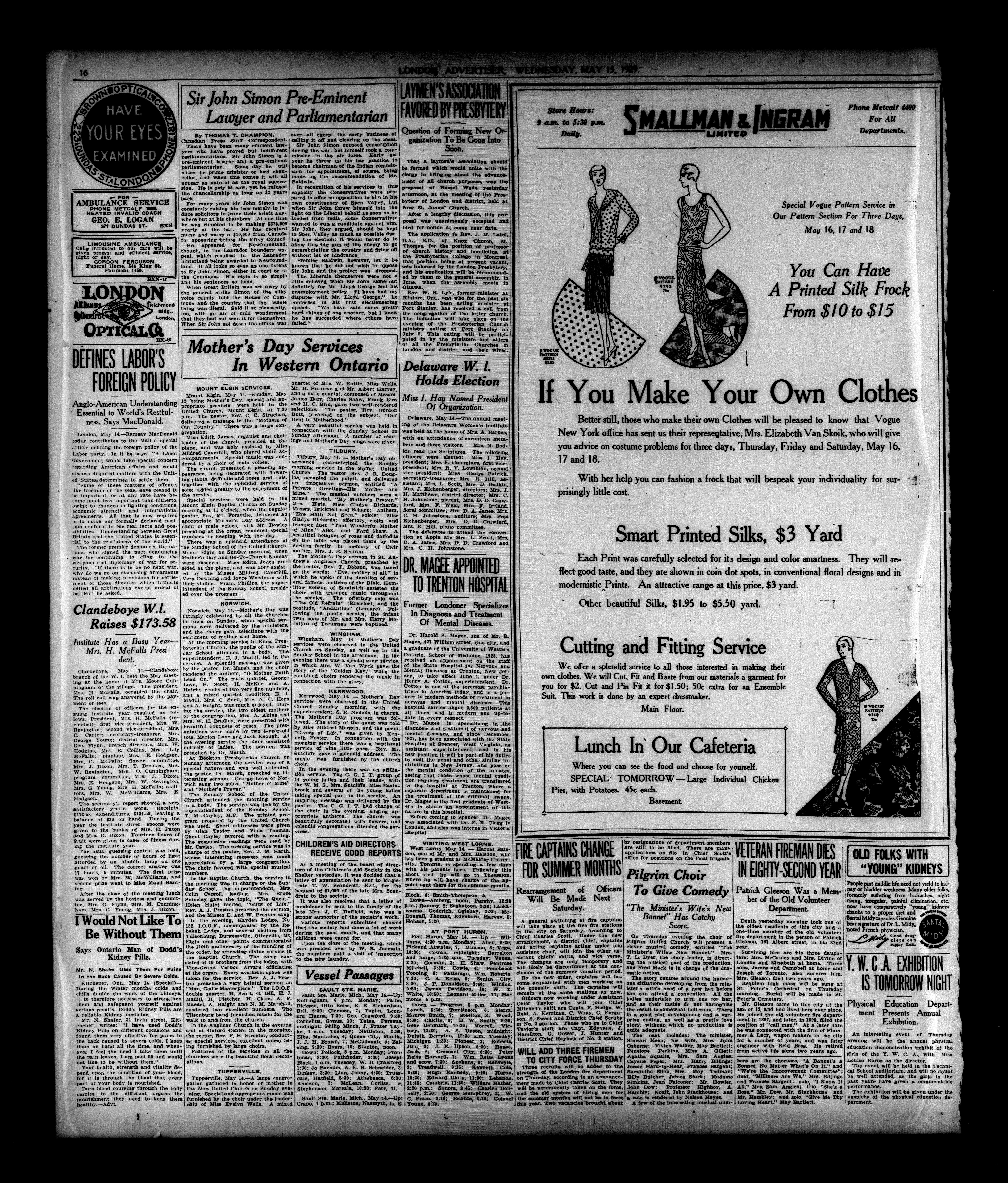 London, Ontario : London Advertiser Company, Limited, [1929]; 16 images, 0 avec recherche en texte intégral