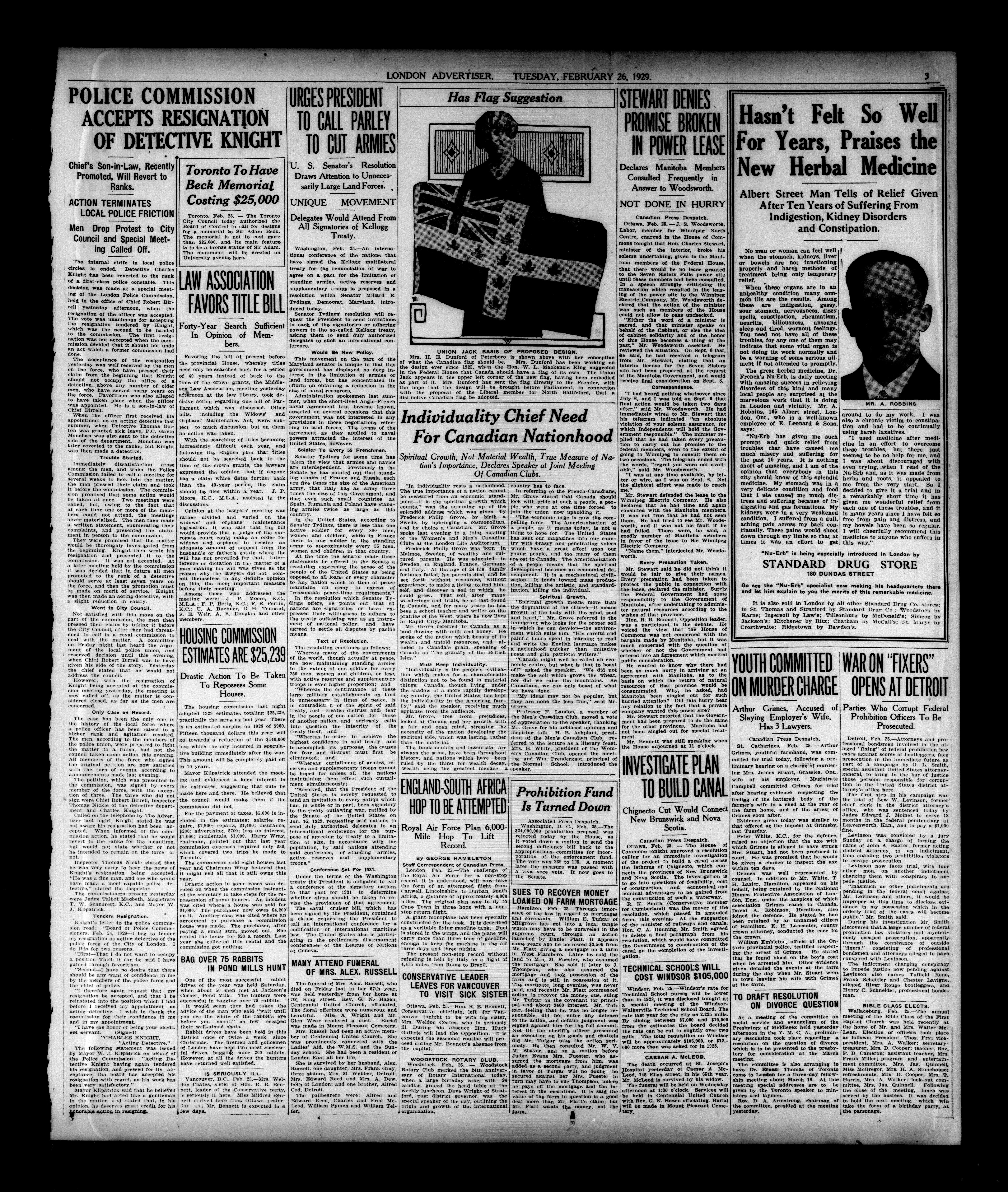 London, Ontario : London Advertiser Company, Limited, [1929]; 16 images, 0 avec recherche en texte intégral