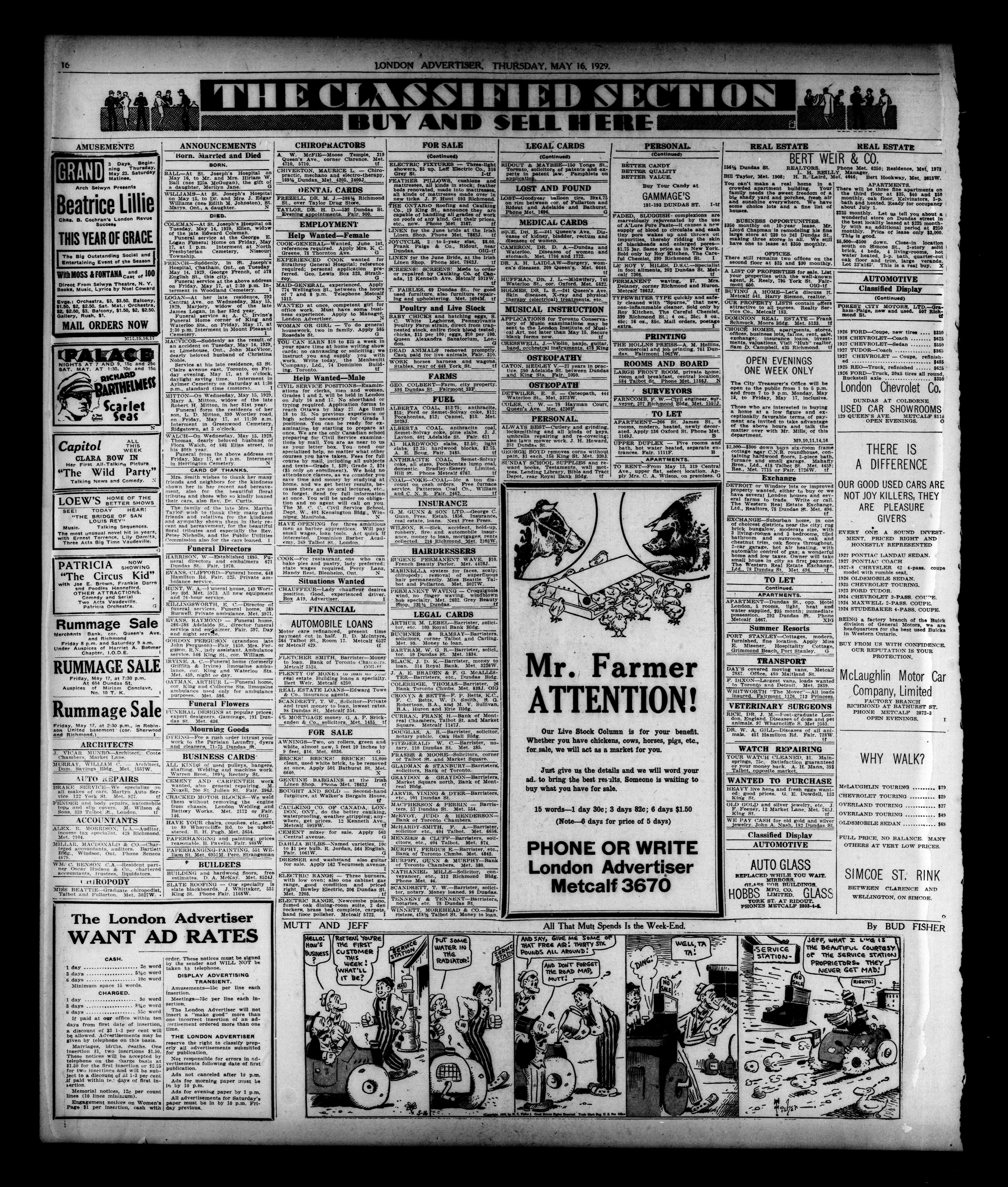 London, Ontario : London Advertiser Company, Limited, [1929]; 18 images, 0 avec recherche en texte intégral