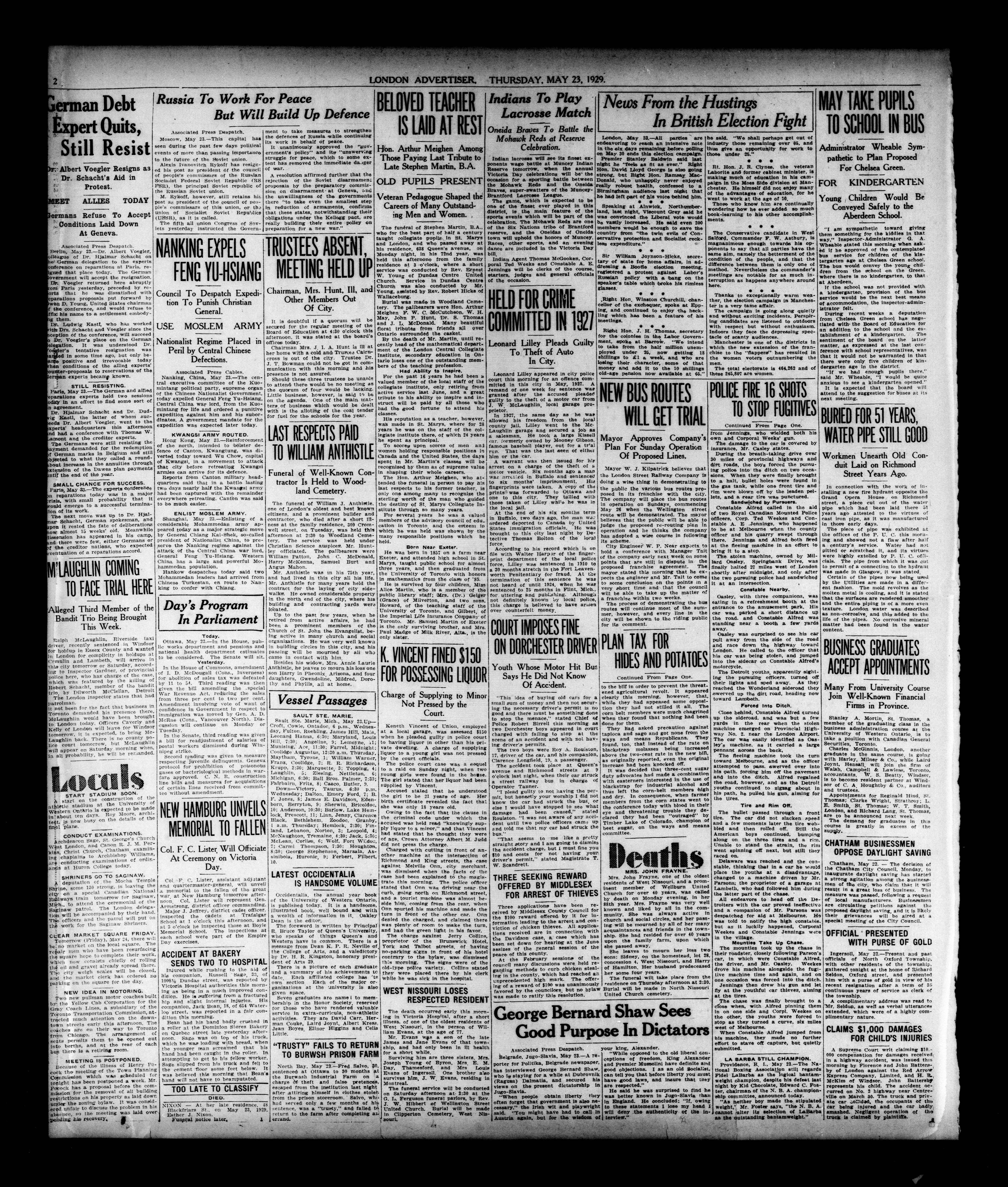 London evening advertiser : 66th Year, No. 25033 (May 23, 1929) - Published