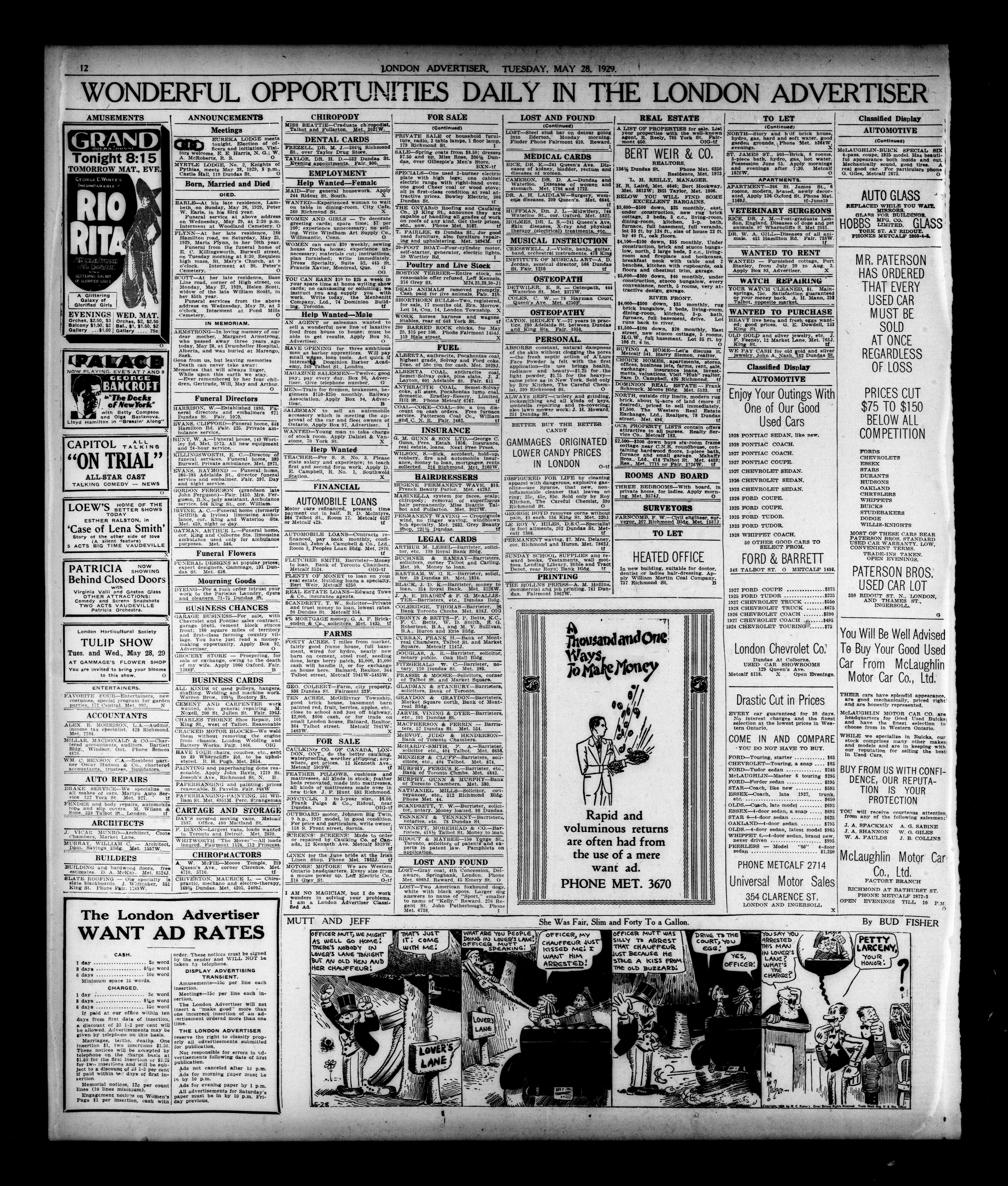 London, Ontario : London Advertiser Company, Limited, [1929]; 14 images, 0 avec recherche en texte intégral