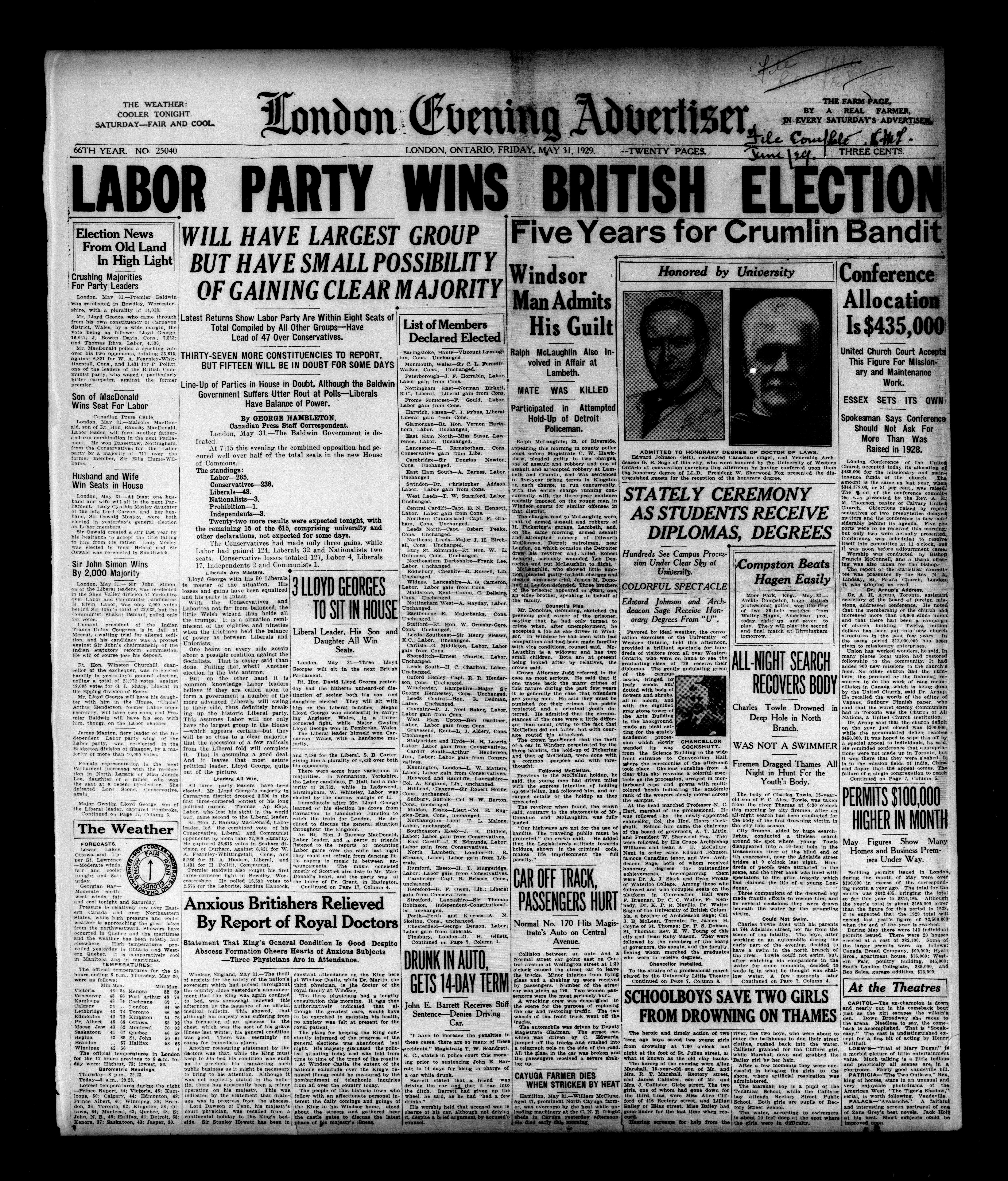 London, Ontario : London Advertiser Company, Limited, [1929]; 20 images, 0 avec recherche en texte intégral
