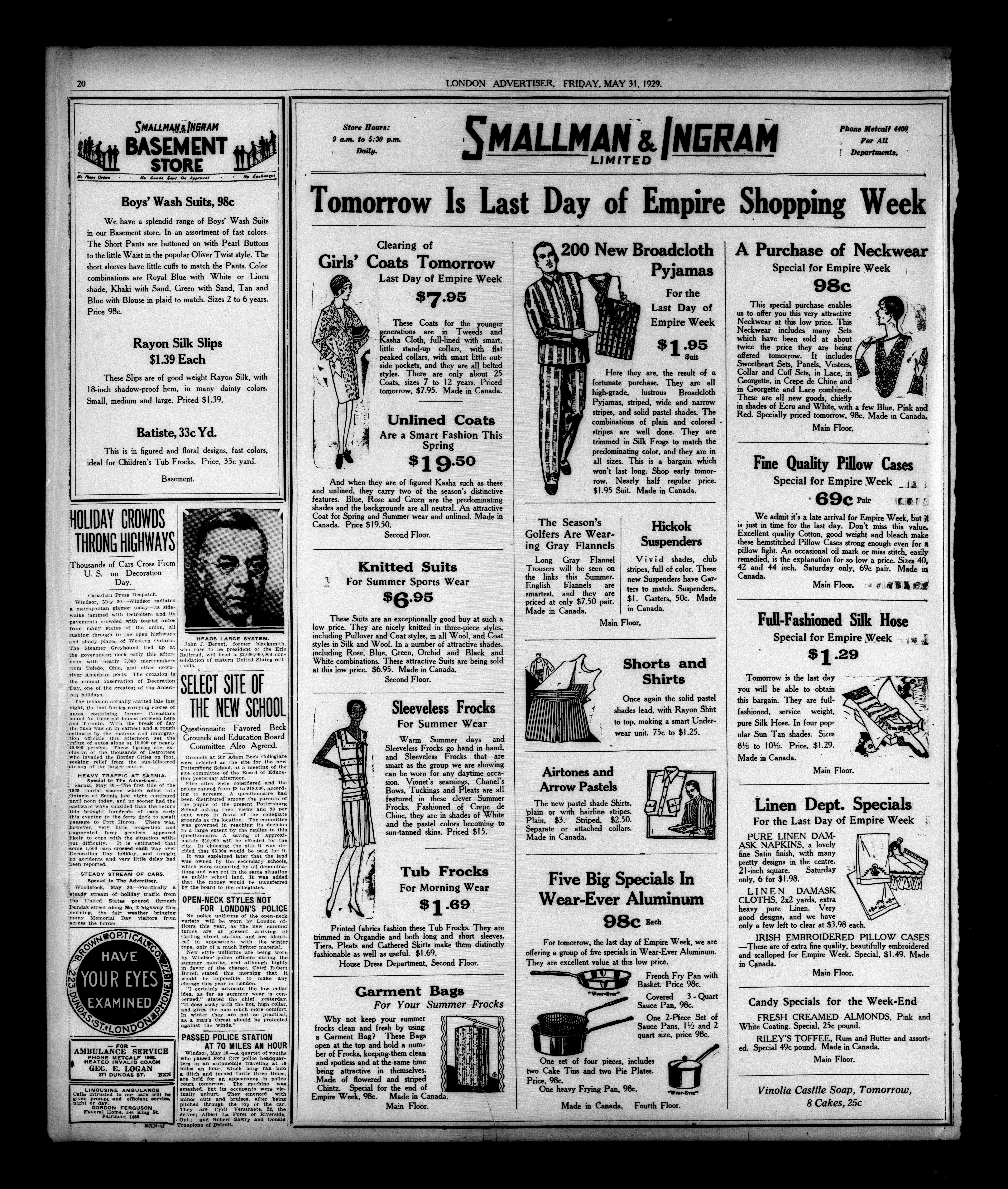 London, Ontario : London Advertiser Company, Limited, [1929]; 20 images, 0 avec recherche en texte intégral