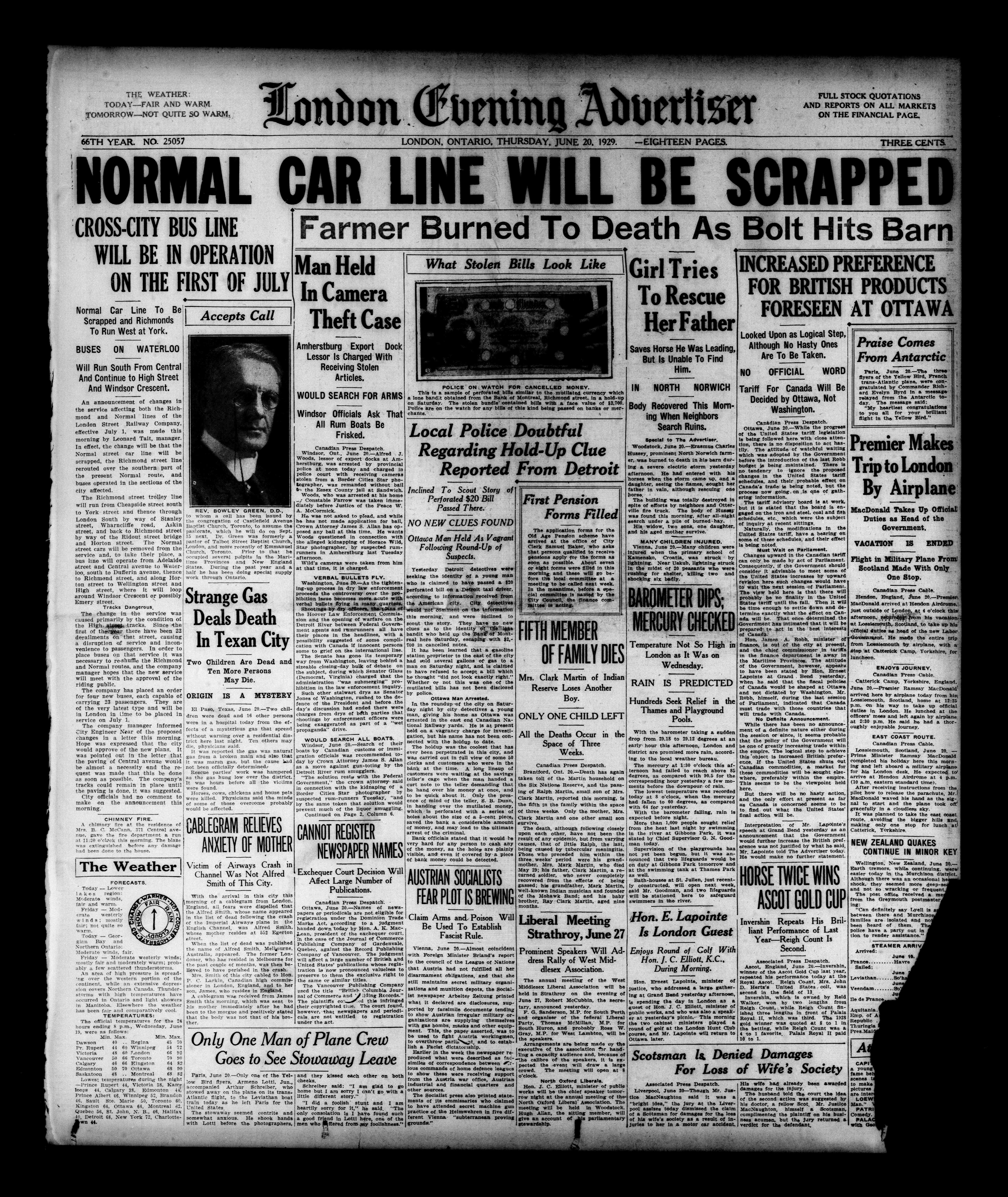 London Evening Advertiser. : London evening advertiser : 66th Year, No. 25057 (June 20, 1929)