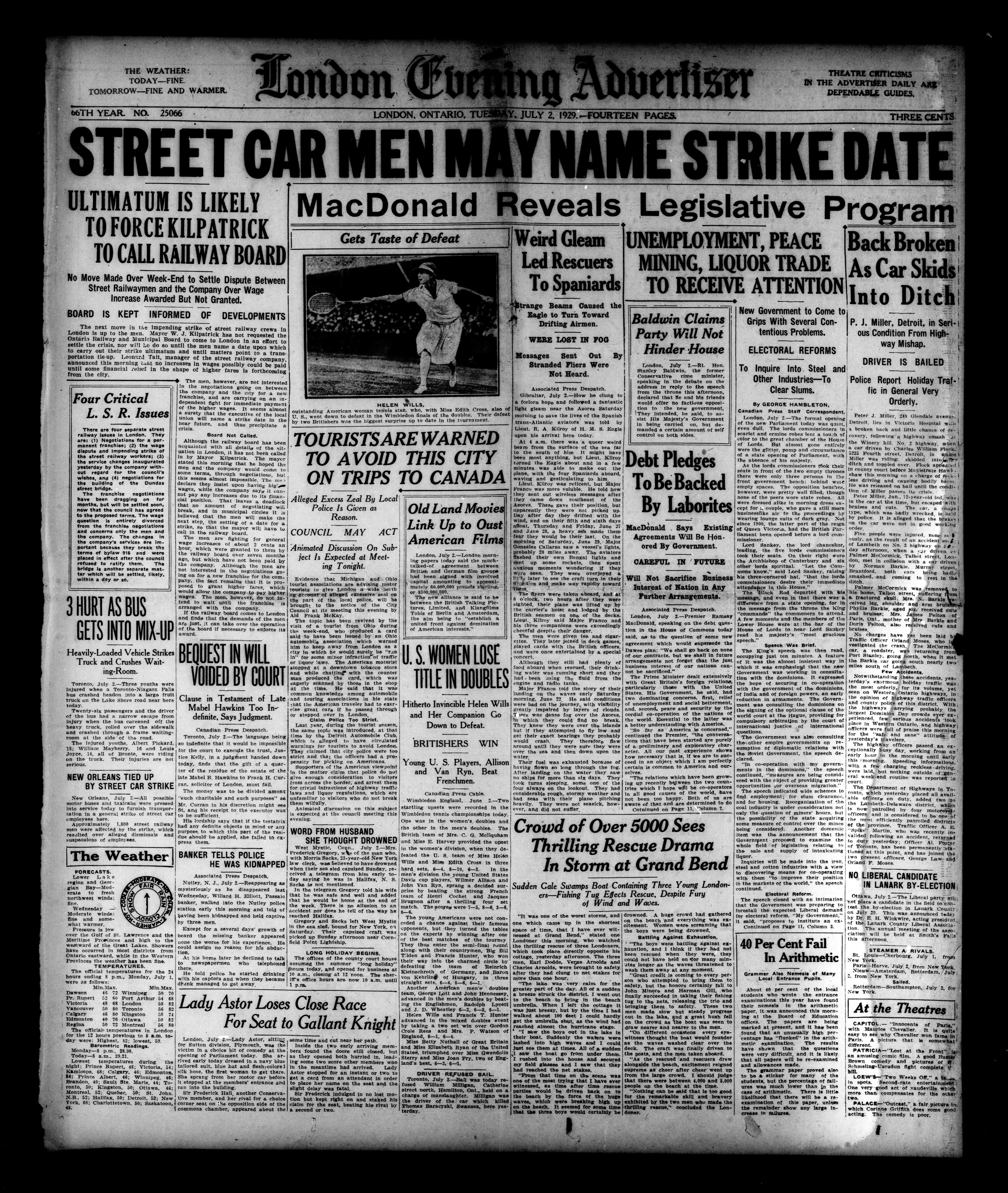 London evening advertiser : 66th Year, No. 25066 (July 2, 1929)