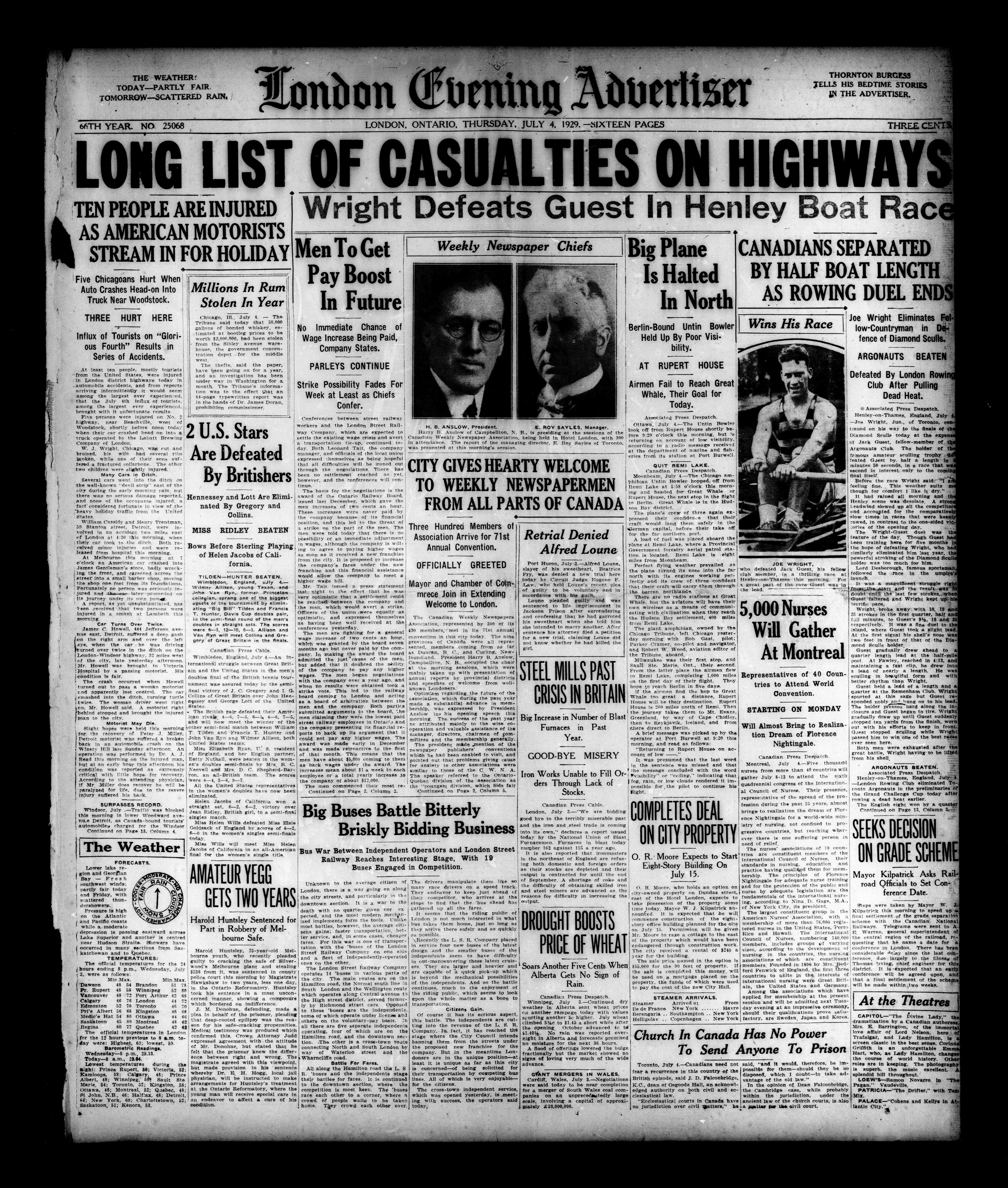 London Evening Advertiser. : London evening advertiser : 66th Year, No. 25068 (July 4, 1929)