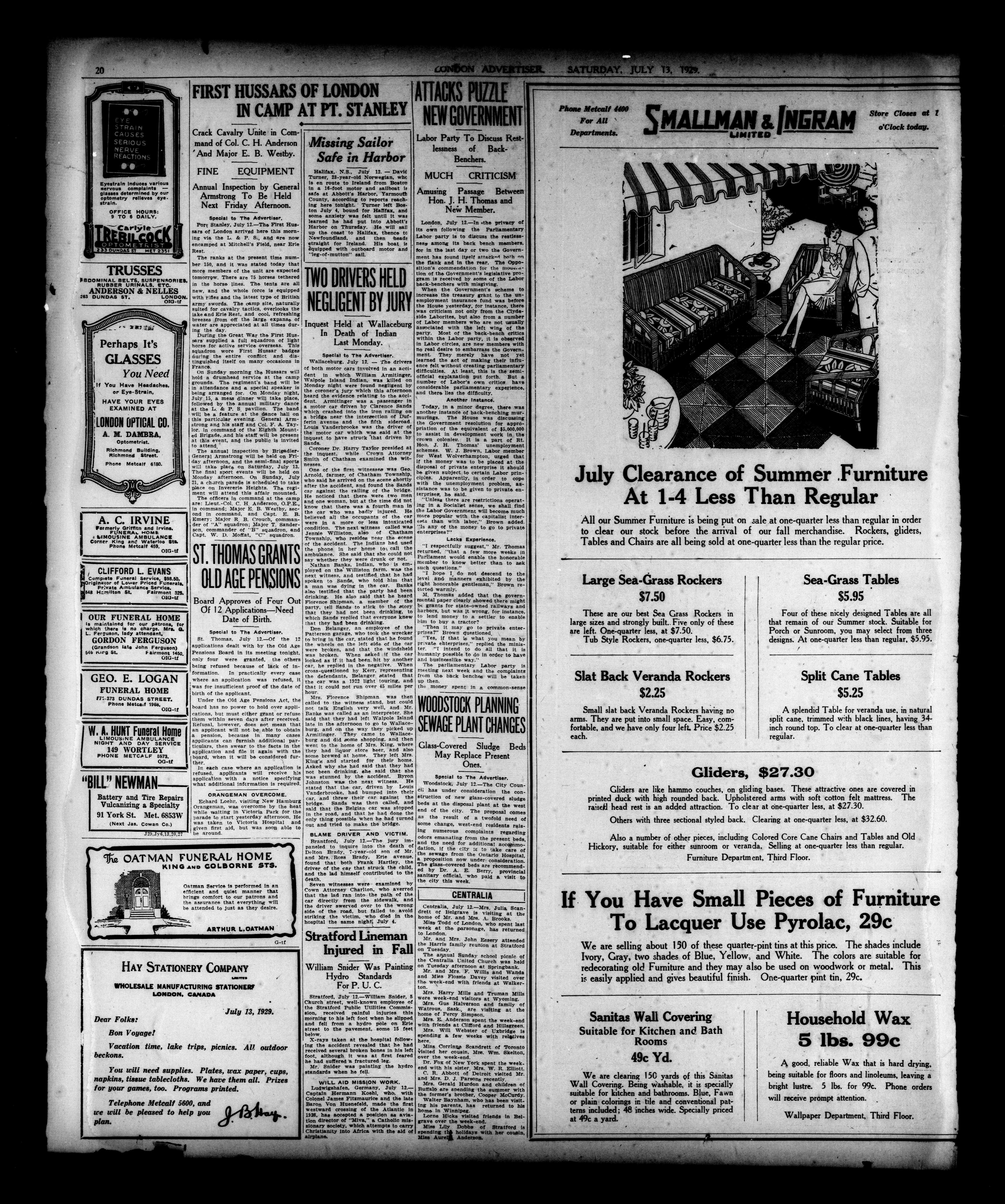 London, Ontario : London Advertiser Company, Limited, [1929]; 20 images, 0 avec recherche en texte intégral