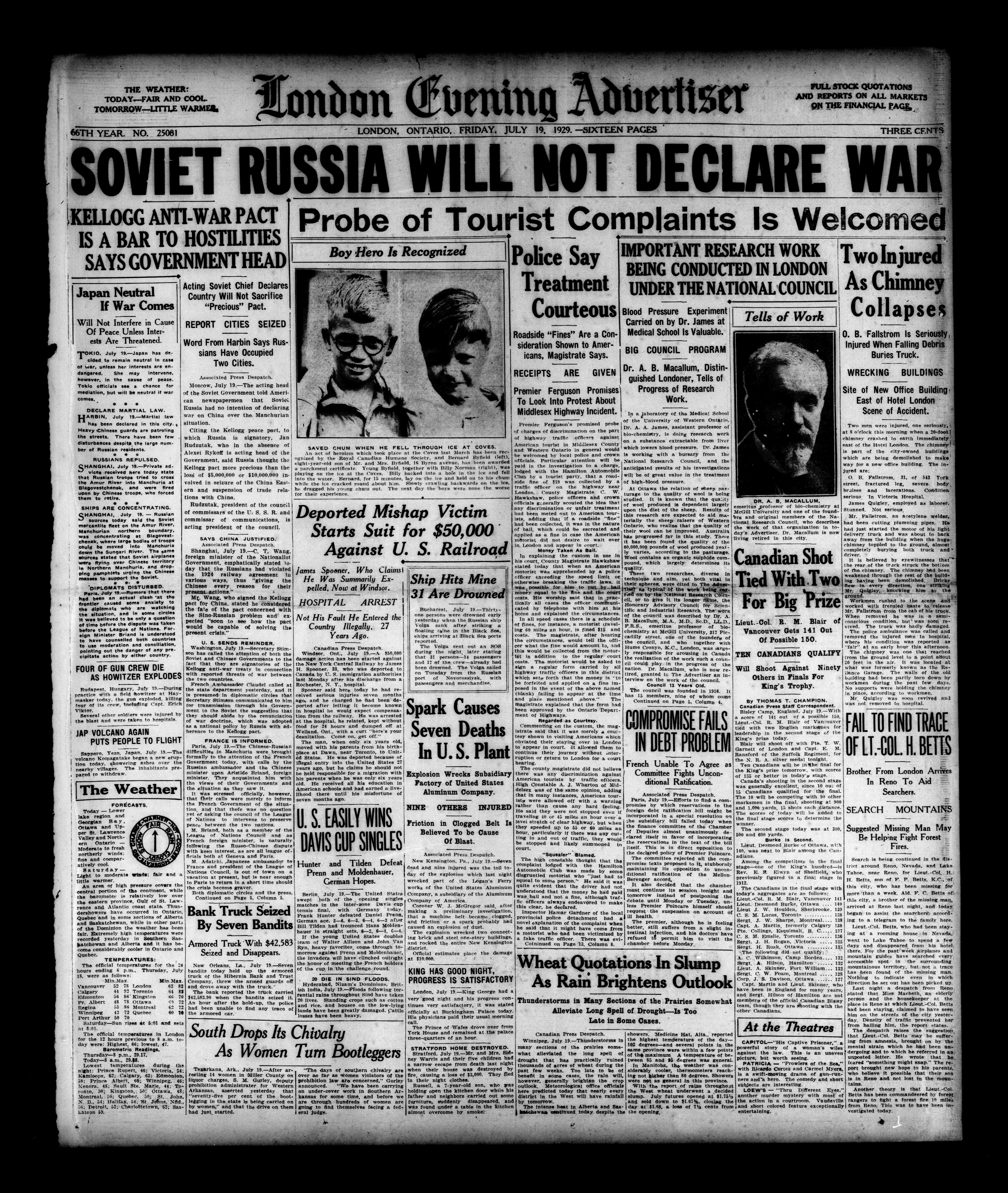 London evening advertiser : 66th Year, No. 25081 (July 19, 1929) - Adresse bibliographique