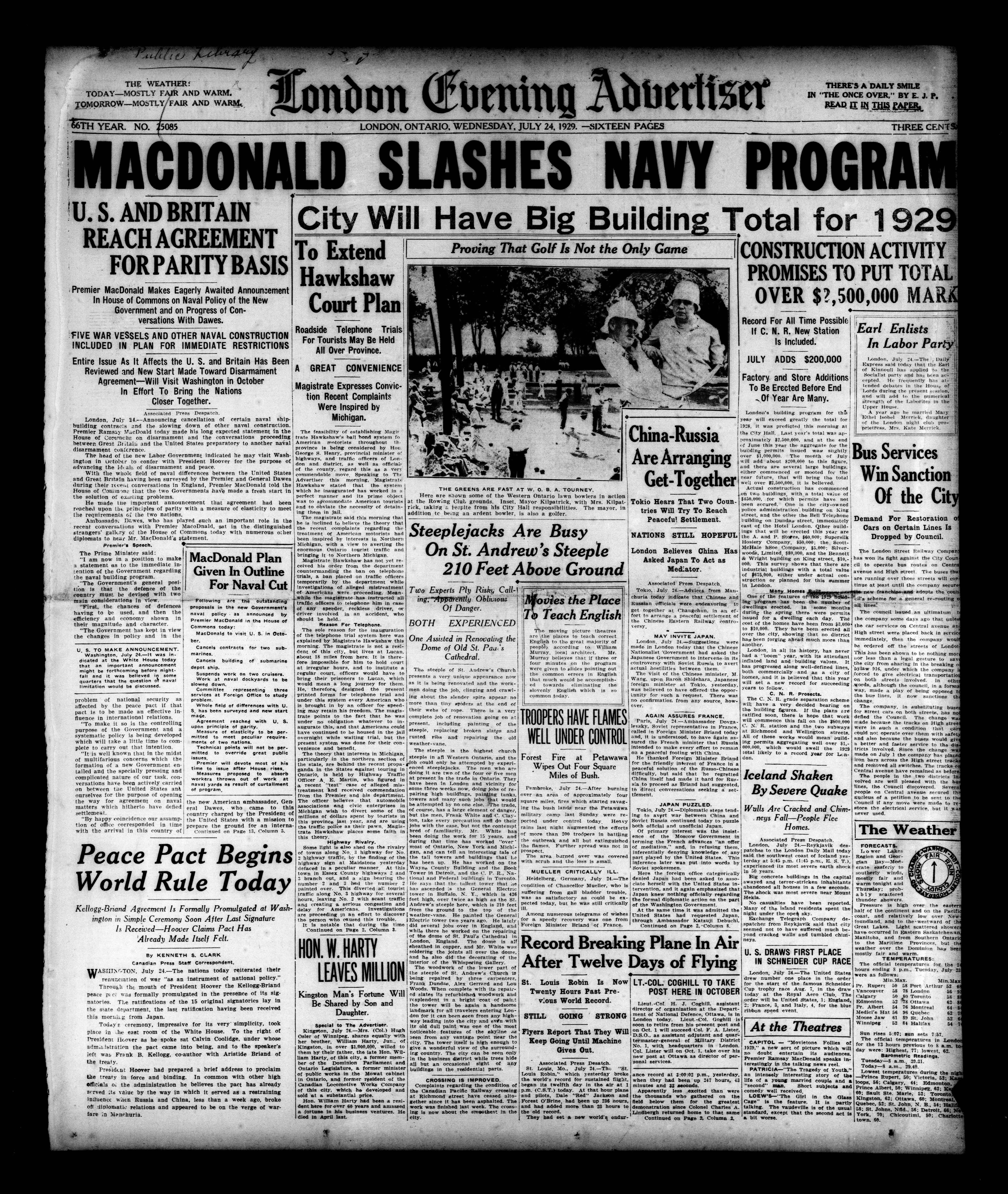 London, Ontario : London Advertiser Company, Limited, [1929]; 16 images, 0 avec recherche en texte intégral
