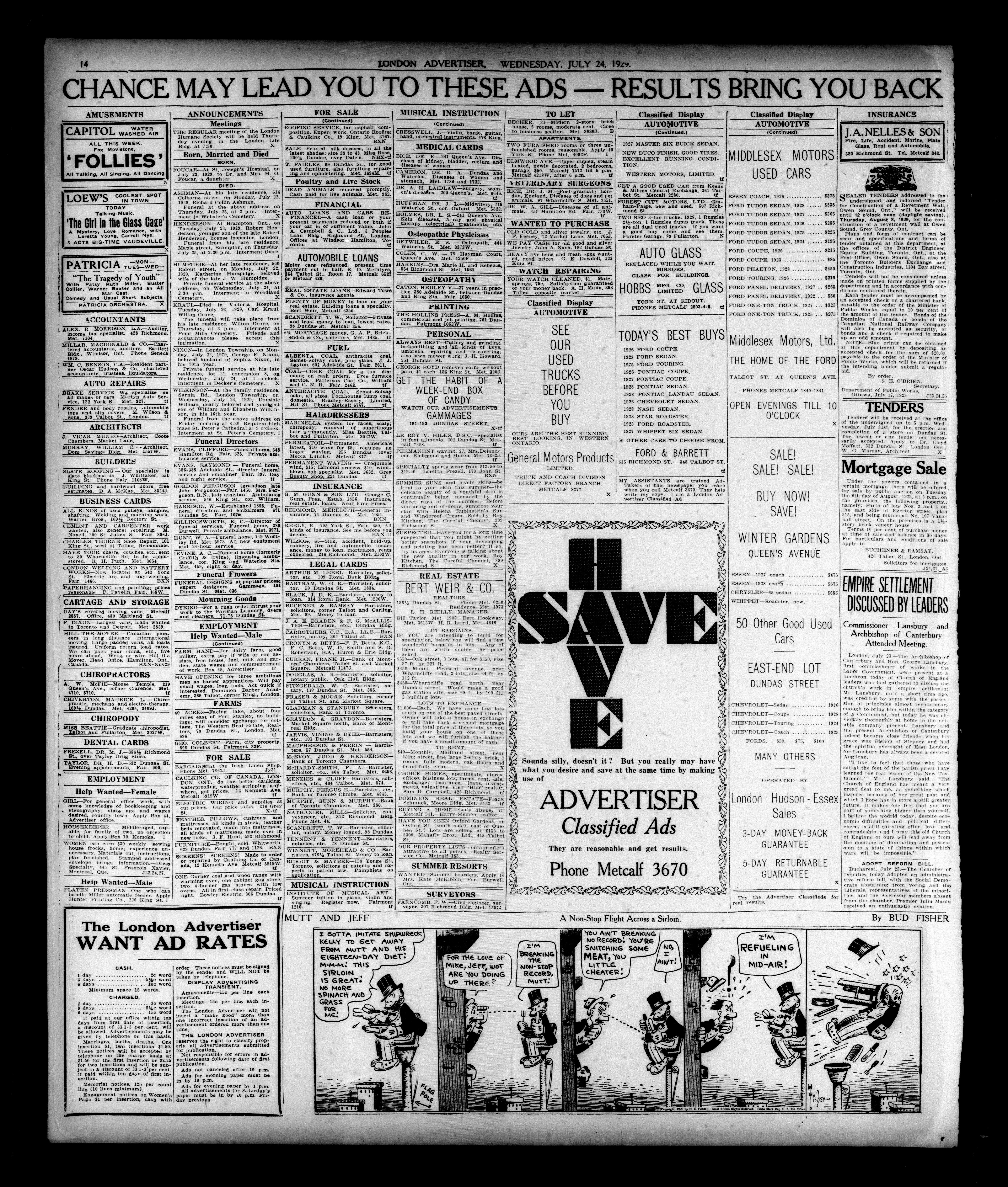 Aide London, Ontario : London Advertiser Company, Limited, [1929]; 16 images, 0 avec recherche en texte intégral