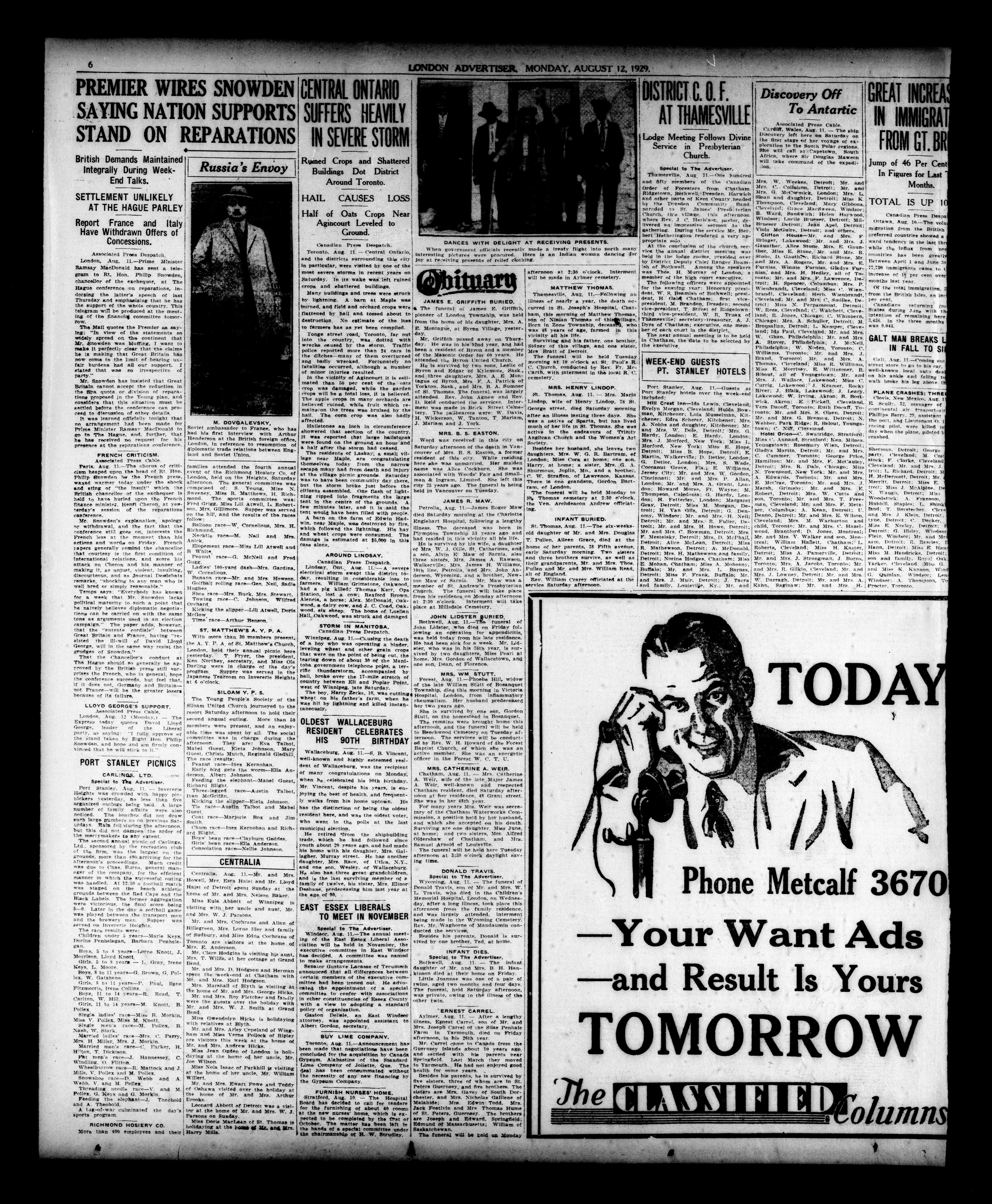 London evening advertiser : 66th Year, No. 25101 (August 12, 1929)