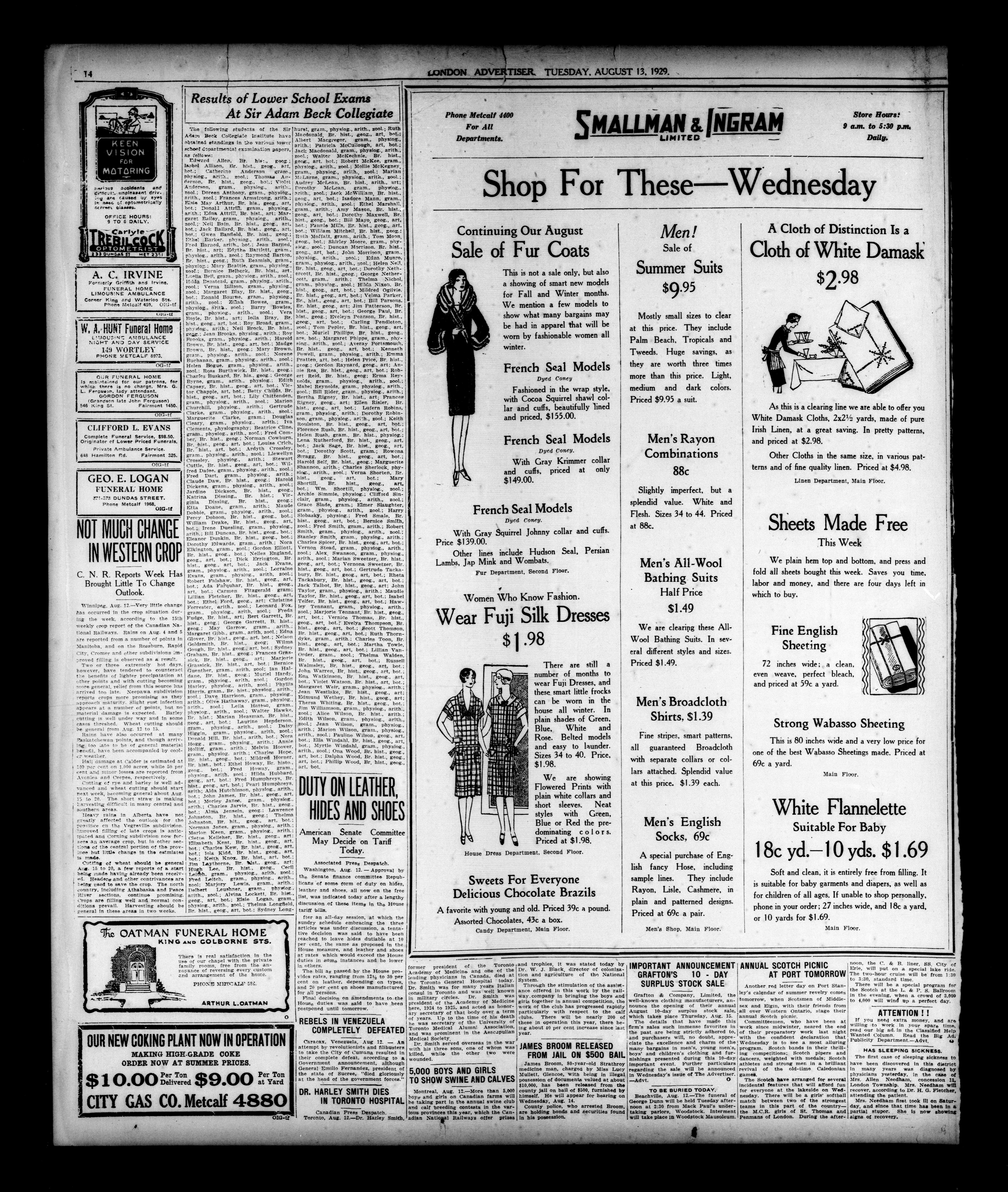 Aide London, Ontario : London Advertiser Company, Limited, [1929]; 14 images, 0 avec recherche en texte intégral