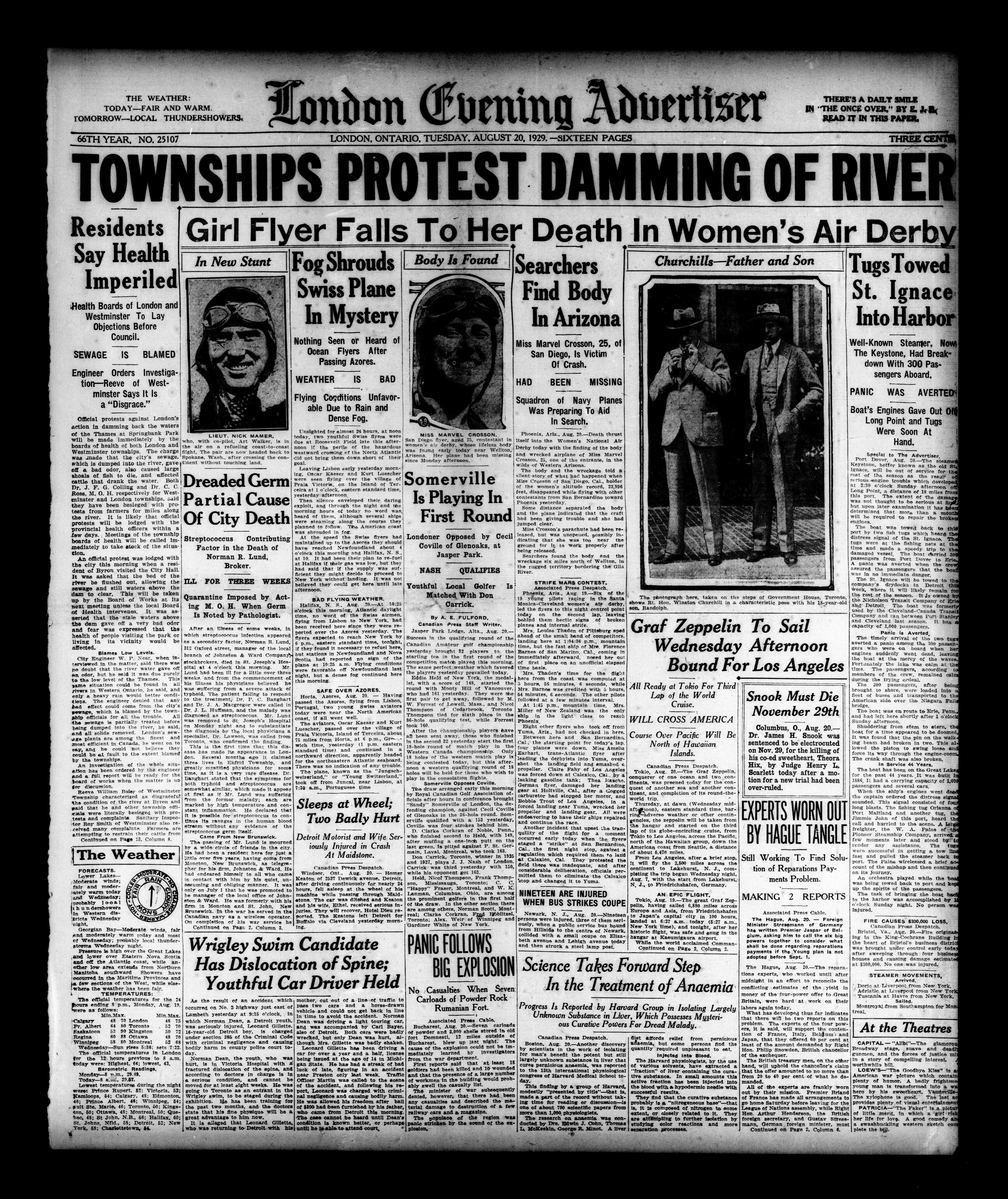 London Evening Advertiser. : London evening advertiser : 66th Year, No. 25107 (August 20, 1929)