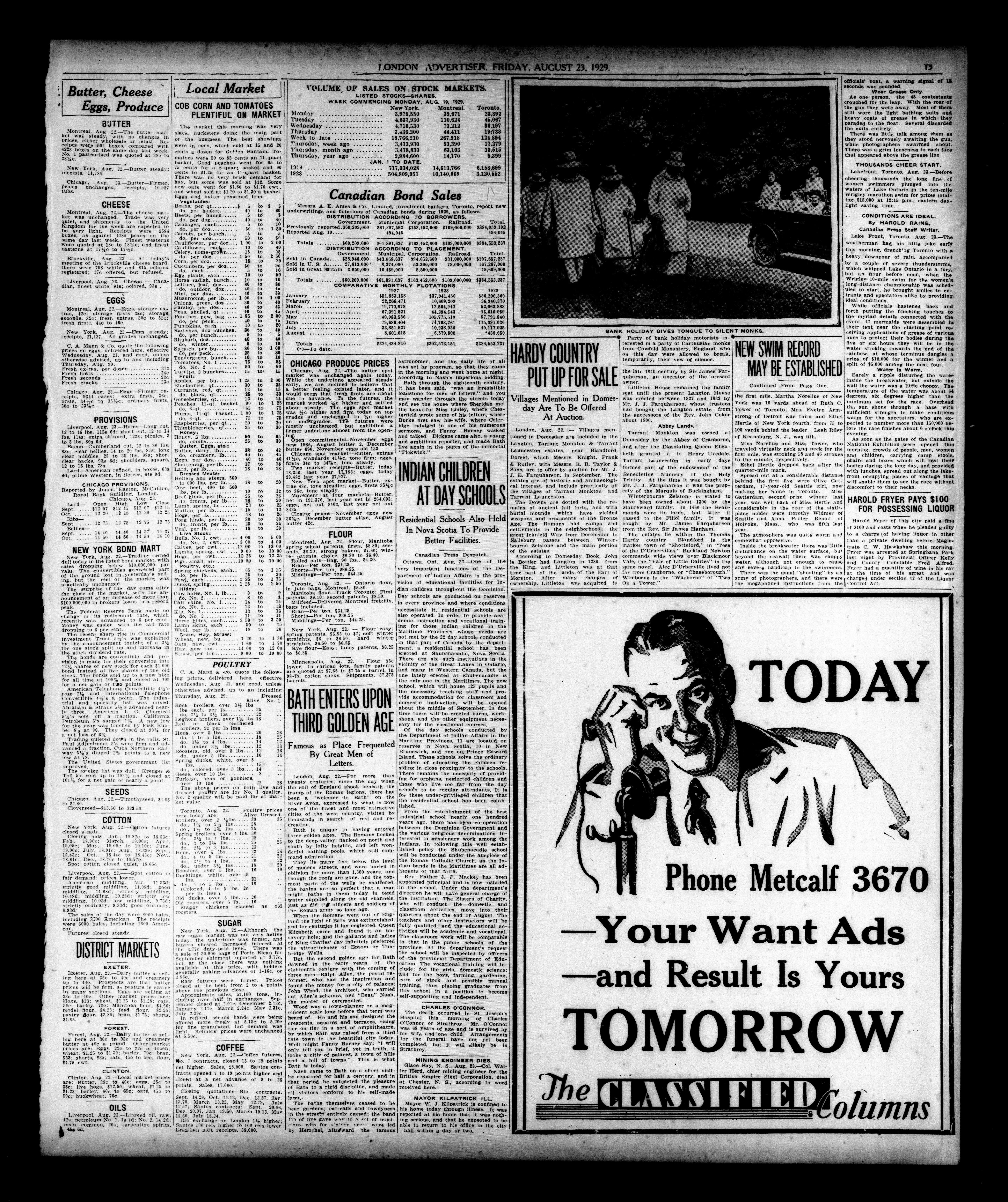 London, Ontario : London Advertiser Company, Limited, [1929]; 16 images, 0 avec recherche en texte intégral