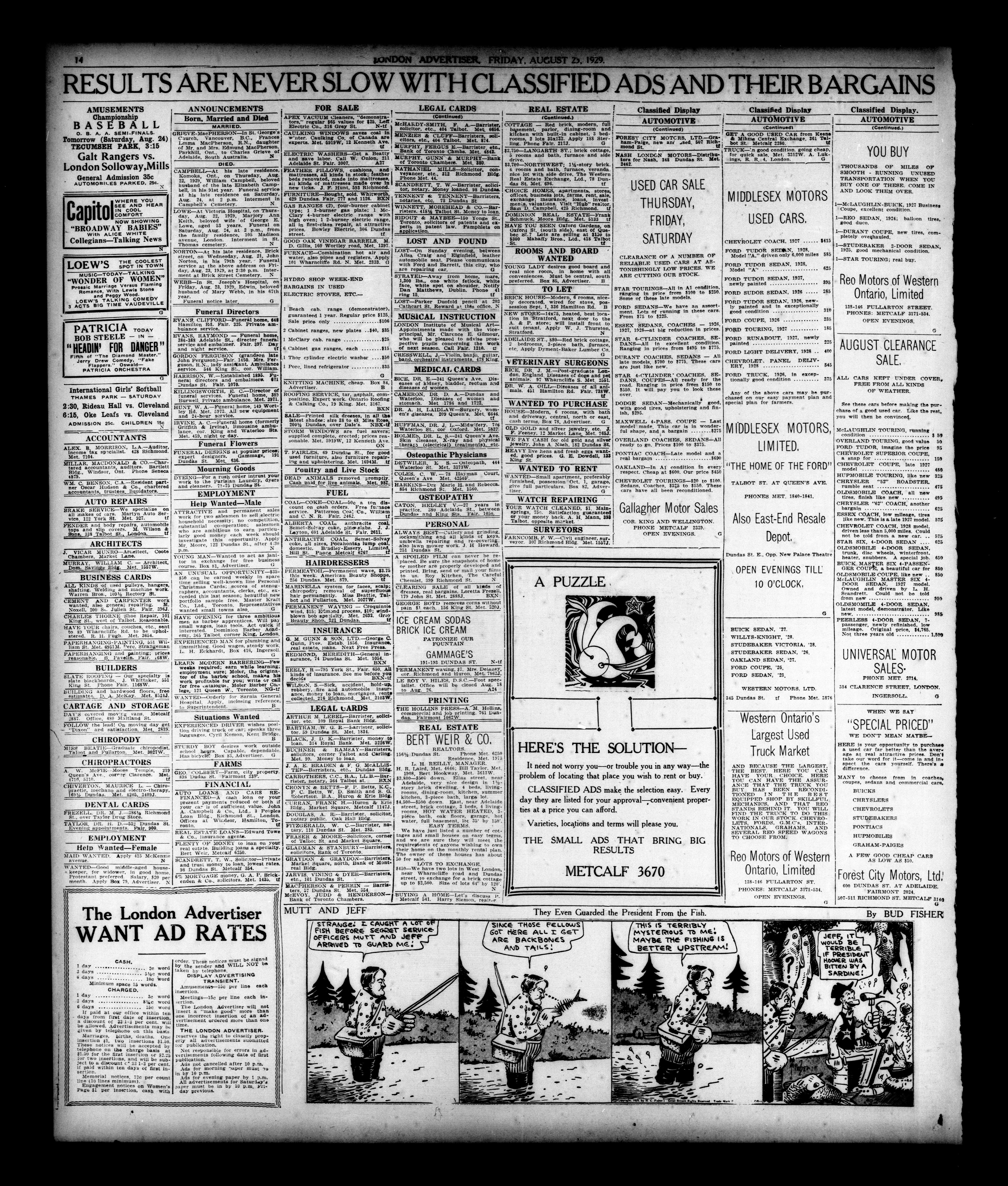 London, Ontario : London Advertiser Company, Limited, [1929]; 16 images, 0 avec recherche en texte intégral