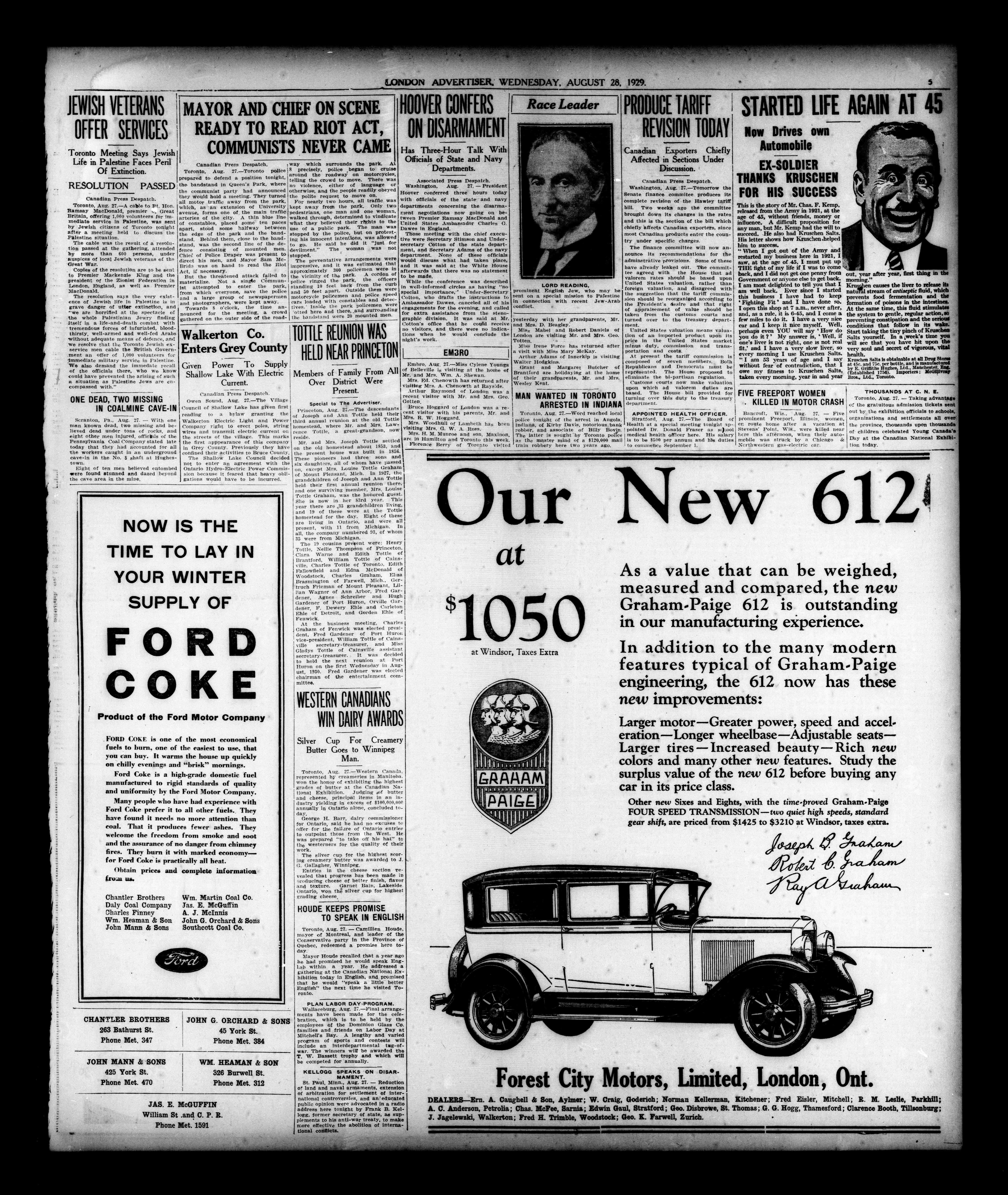 London, Ontario : London Advertiser Company, Limited, [1929]; 16 images, 0 avec recherche en texte intégral