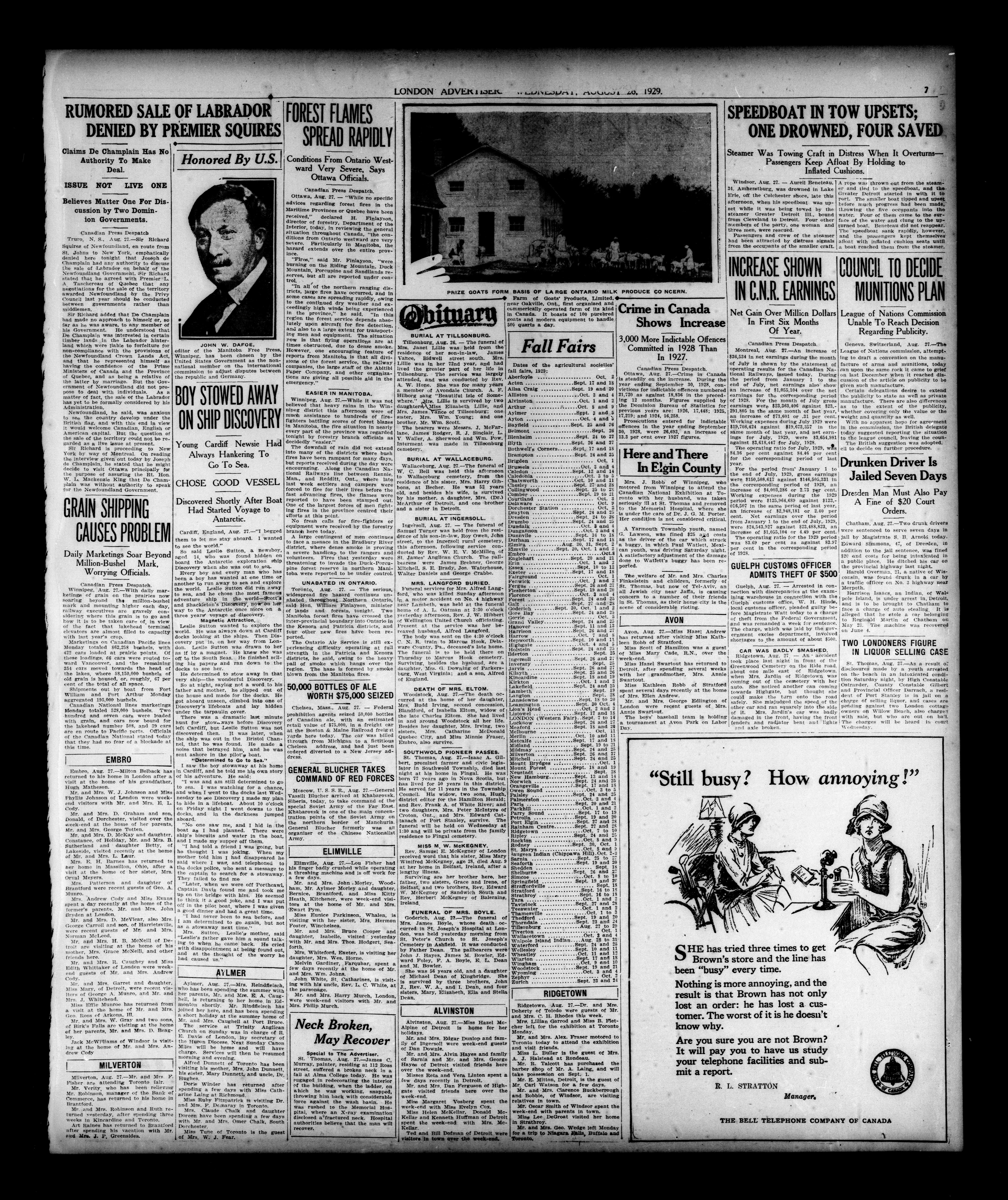 London, Ontario : London Advertiser Company, Limited, [1929]; 16 images, 0 avec recherche en texte intégral