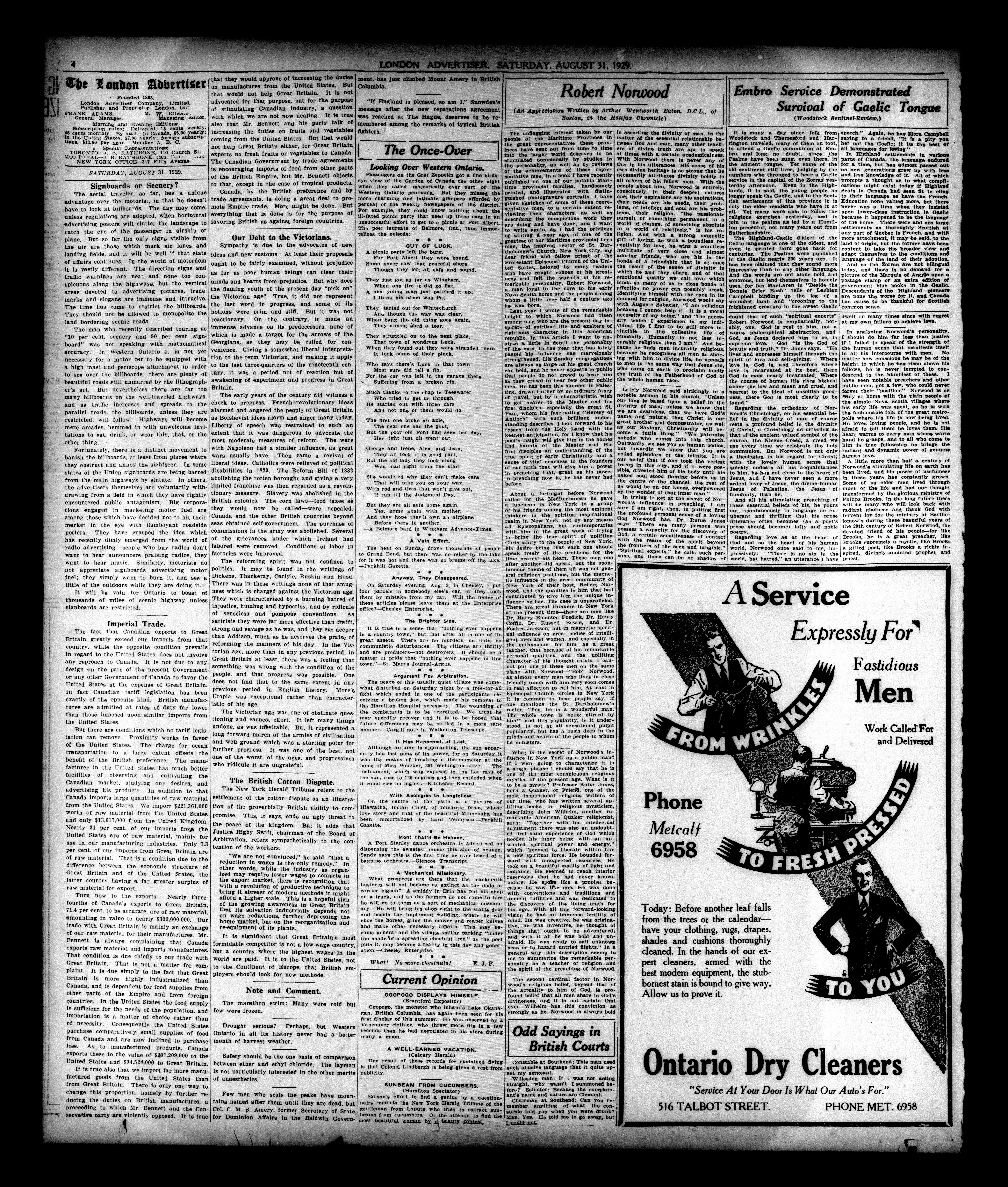 London, Ontario : London Advertiser Company, Limited, [1929]; 20 images, 0 avec recherche en texte intégral