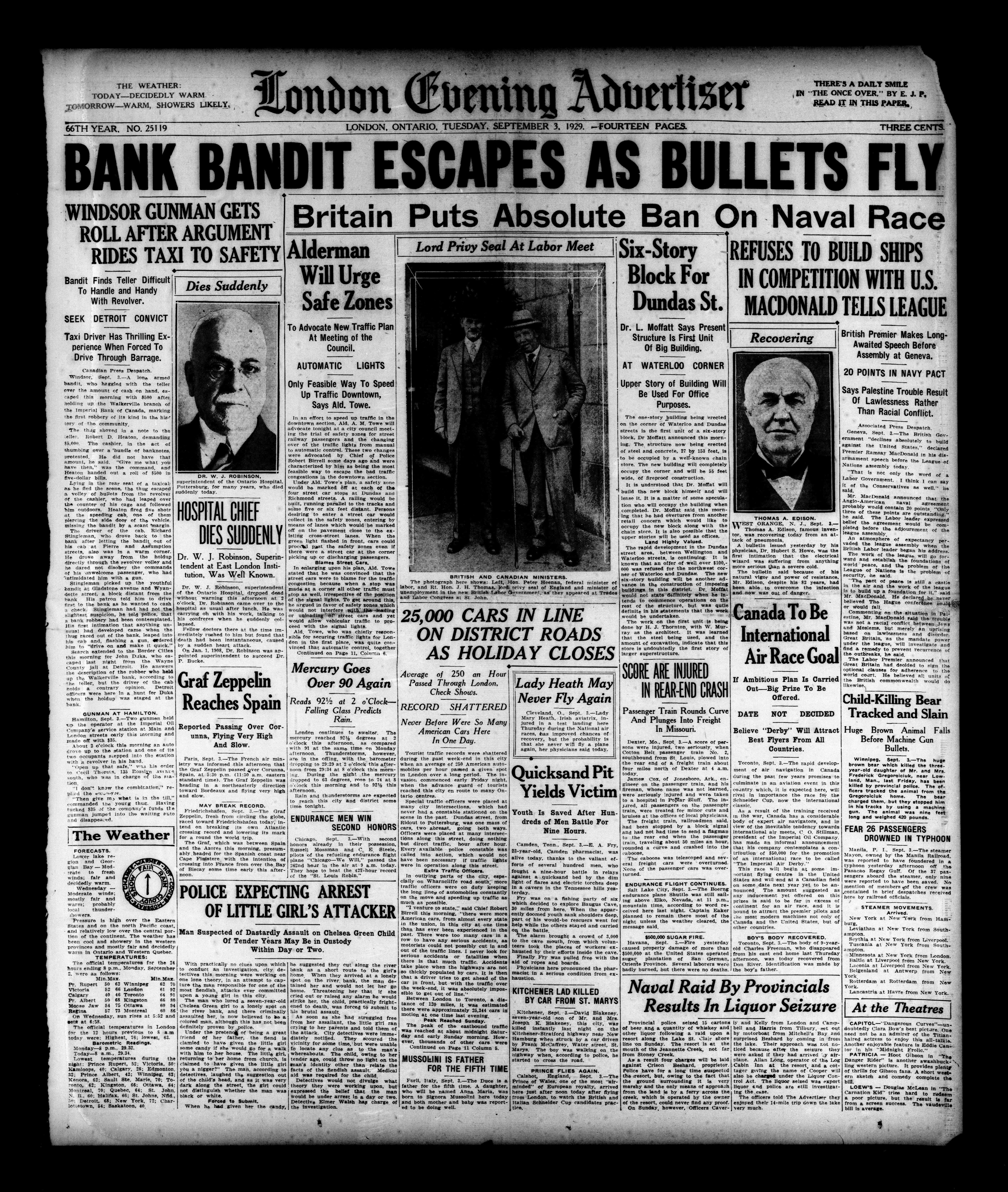 London, Ontario : London Advertiser Company, Limited, [1929]; 14 images, 0 avec recherche en texte intégral