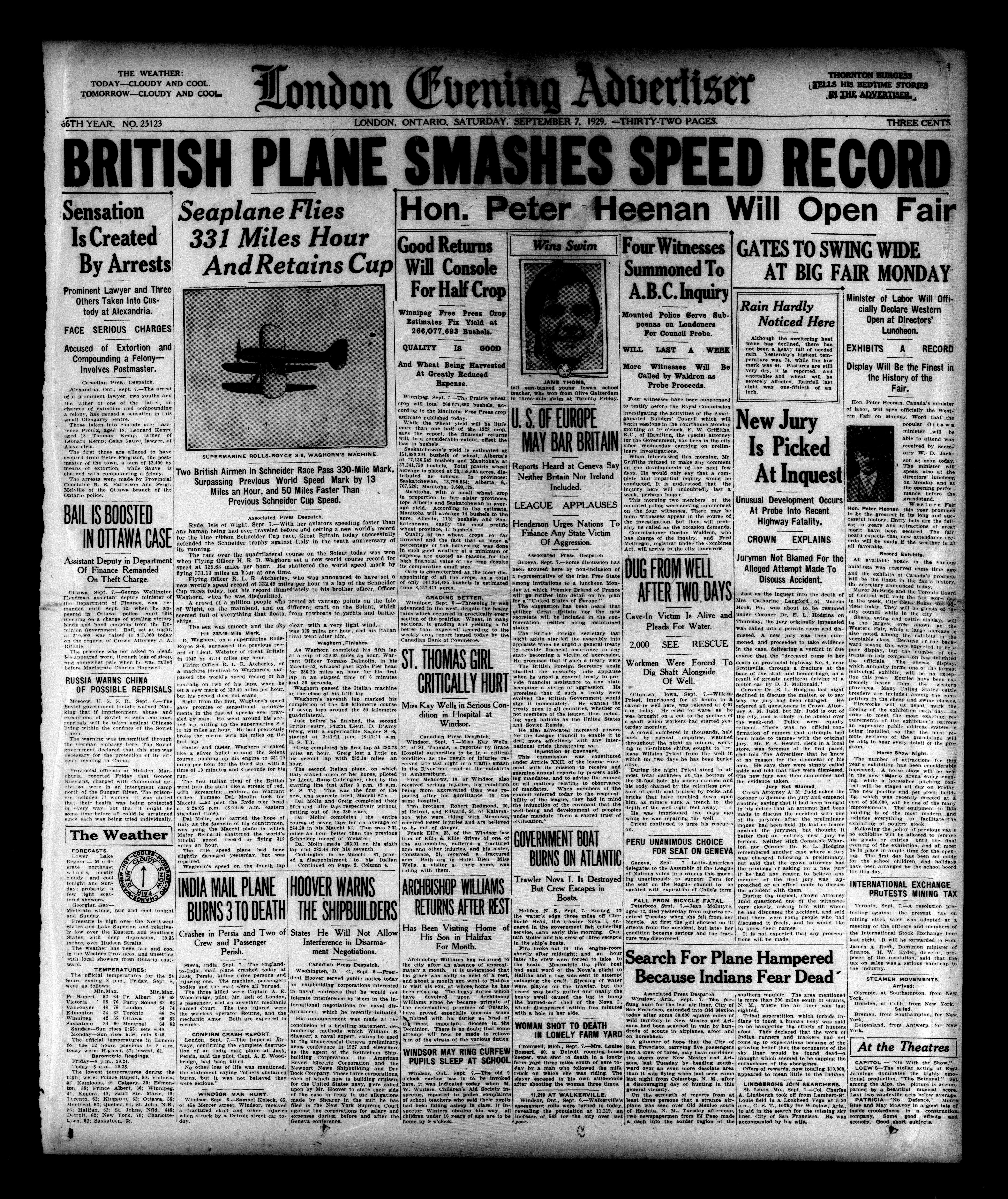 London, Ontario : London Advertiser Company, Limited, [1929]; 32 images, 0 avec recherche en texte intégral