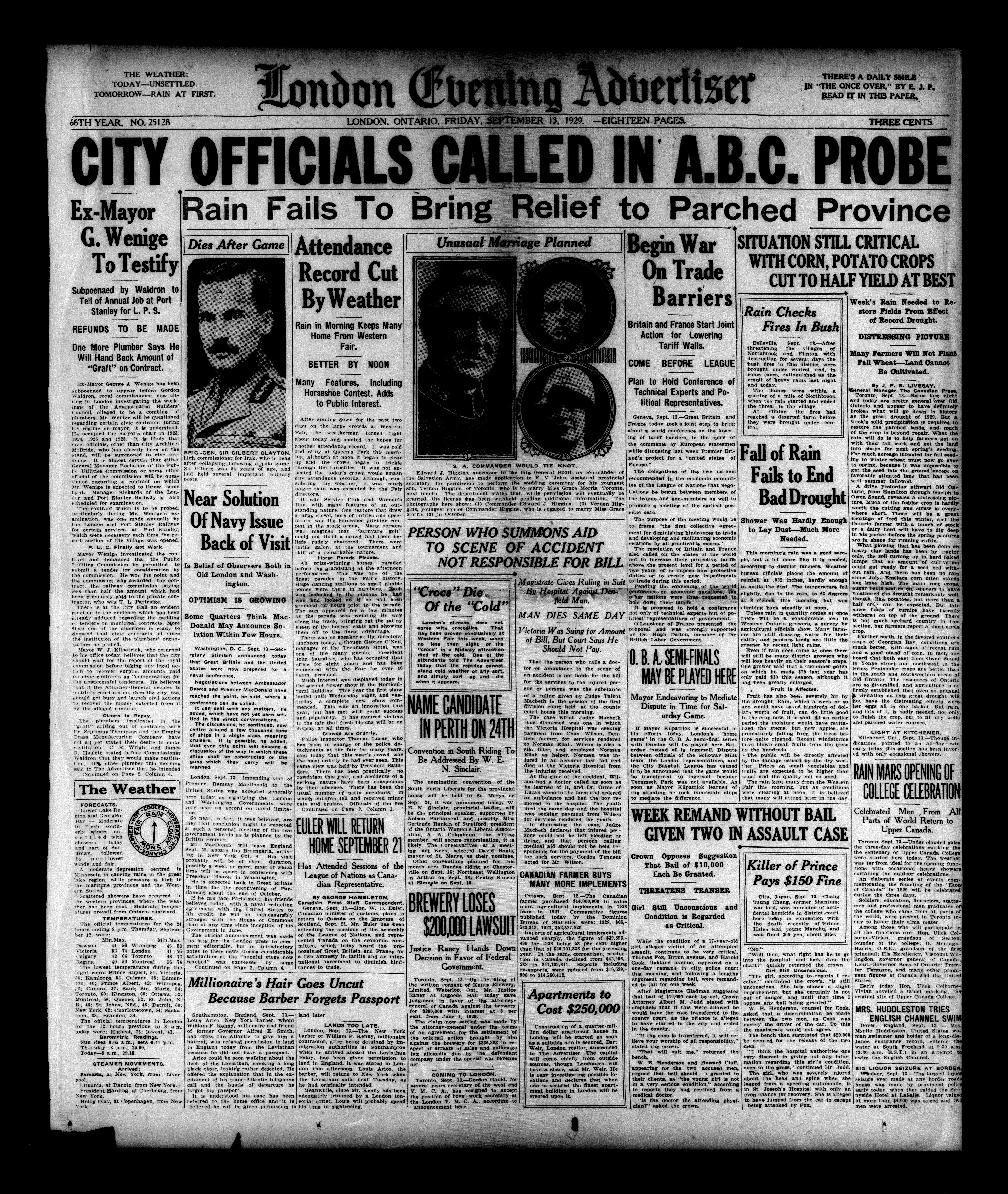 London evening advertiser : 66th Year, No. 25128 (September 13, 1929)