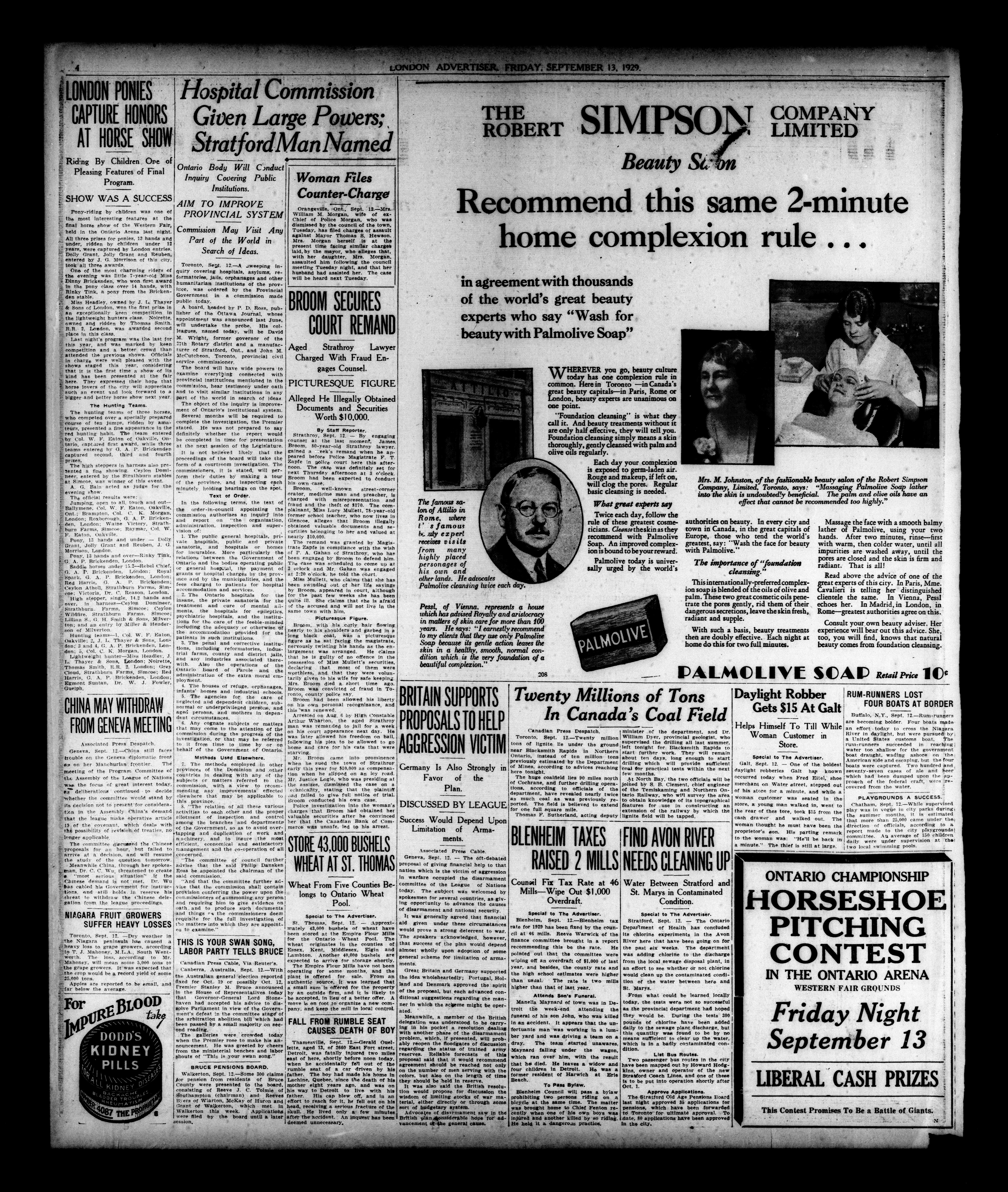 London, Ontario : London Advertiser Company, Limited, [1929]; 18 images, 0 avec recherche en texte intégral