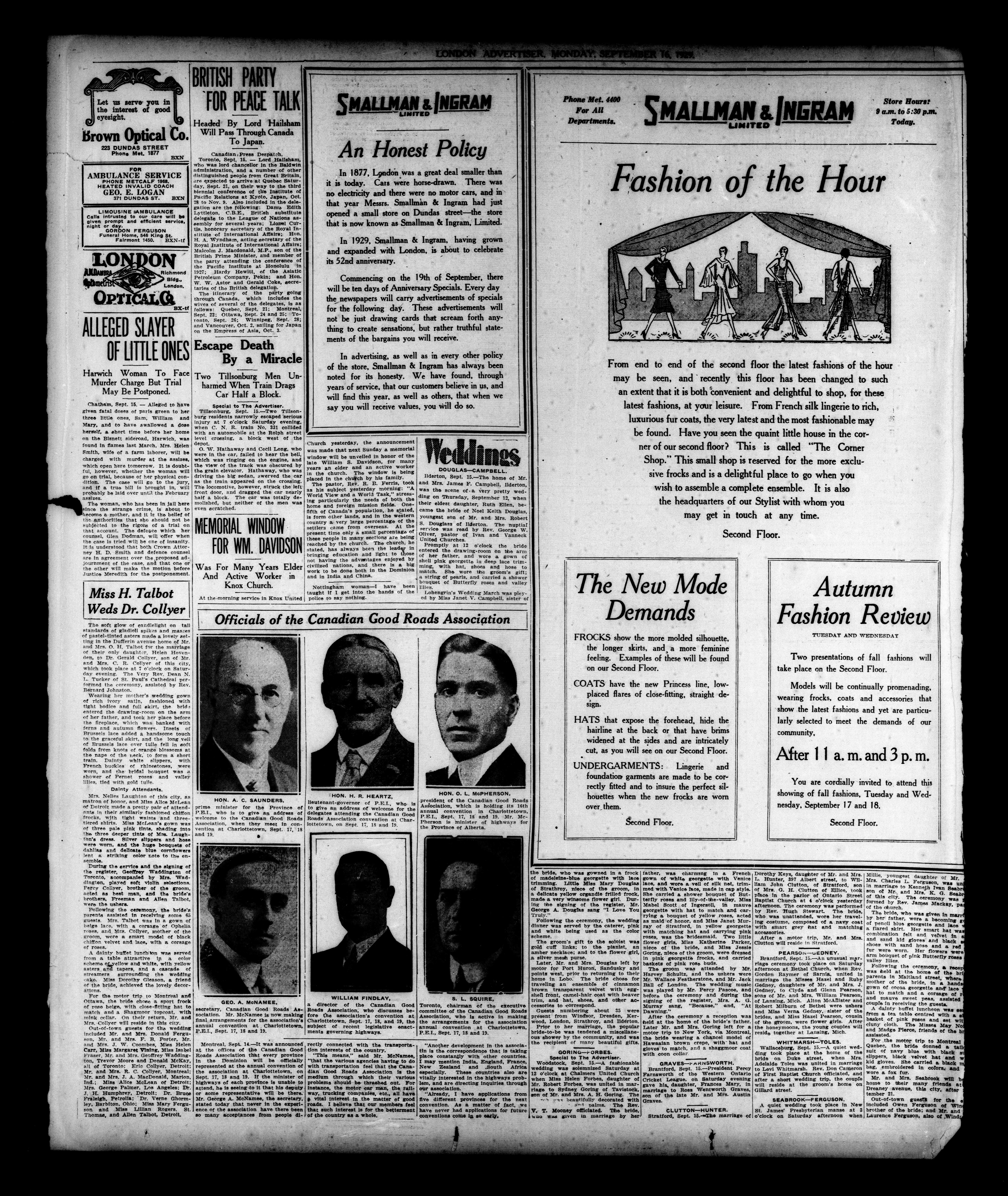 London, Ontario : London Advertiser Company, Limited, [1929]; 16 images, 0 avec recherche en texte intégral