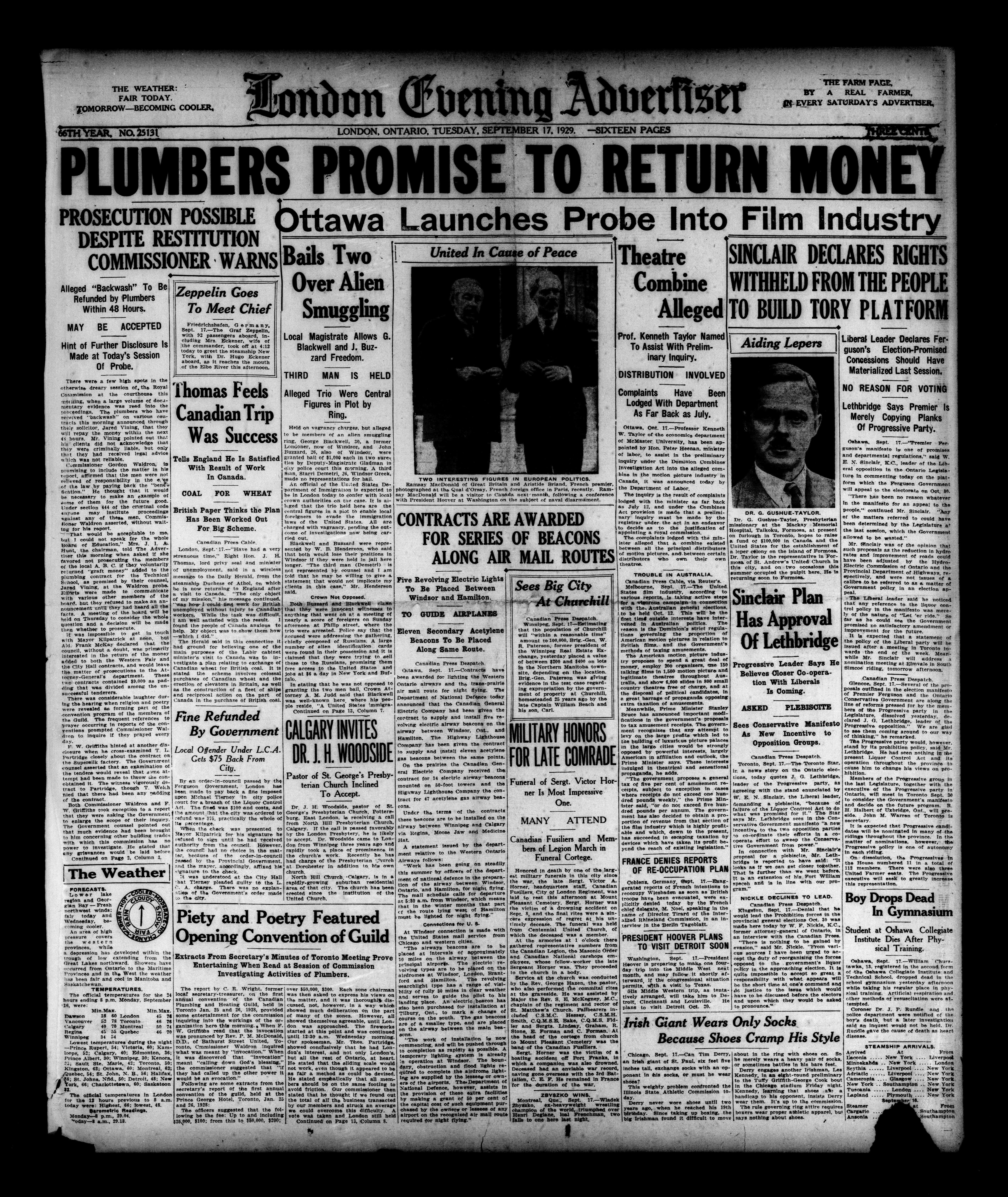 London, Ontario : London Advertiser Company, Limited, [1929]; 16 images, 0 avec recherche en texte intégral