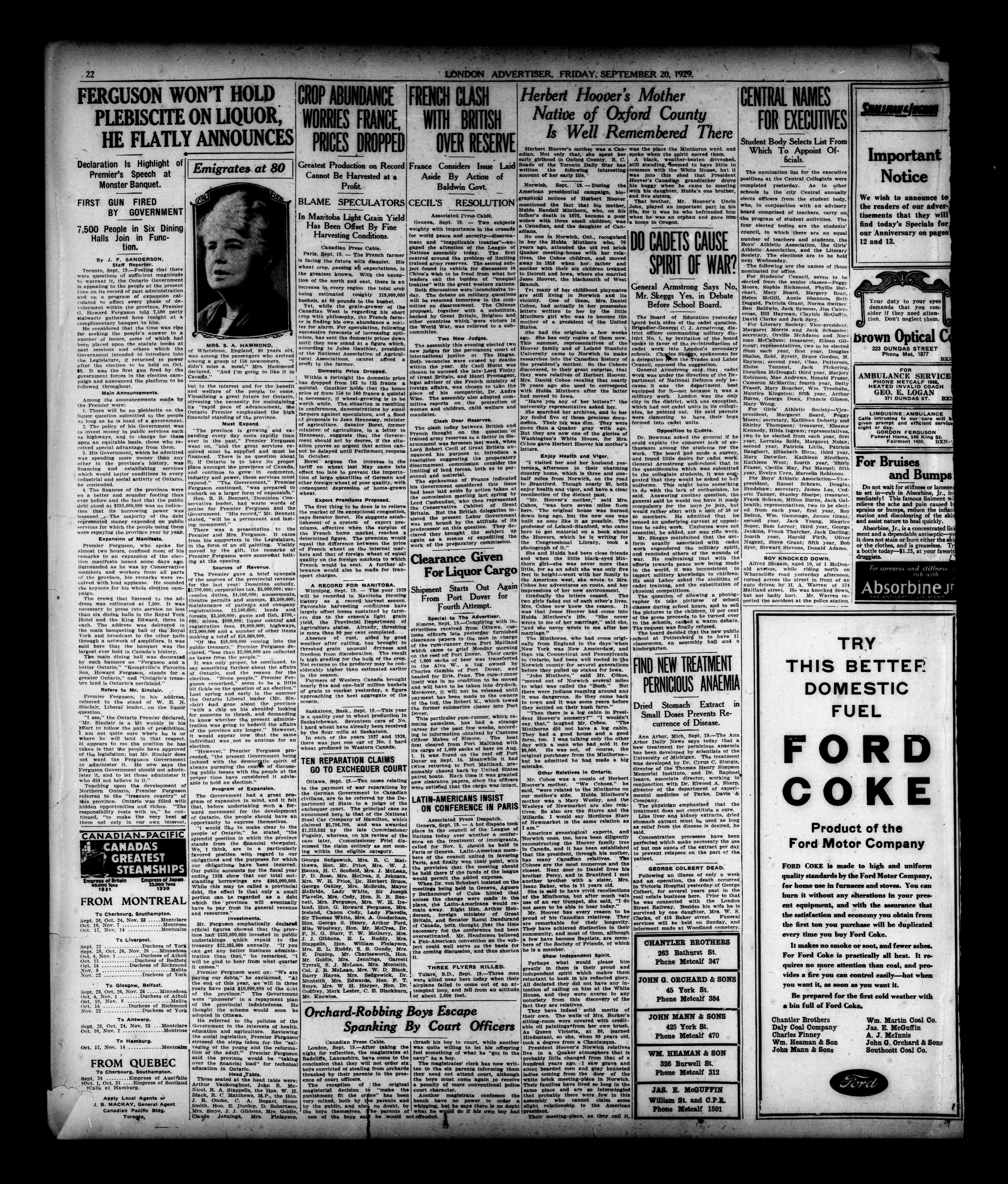 London, Ontario : London Advertiser Company, Limited, [1929]; 22 images, 0 avec recherche en texte intégral