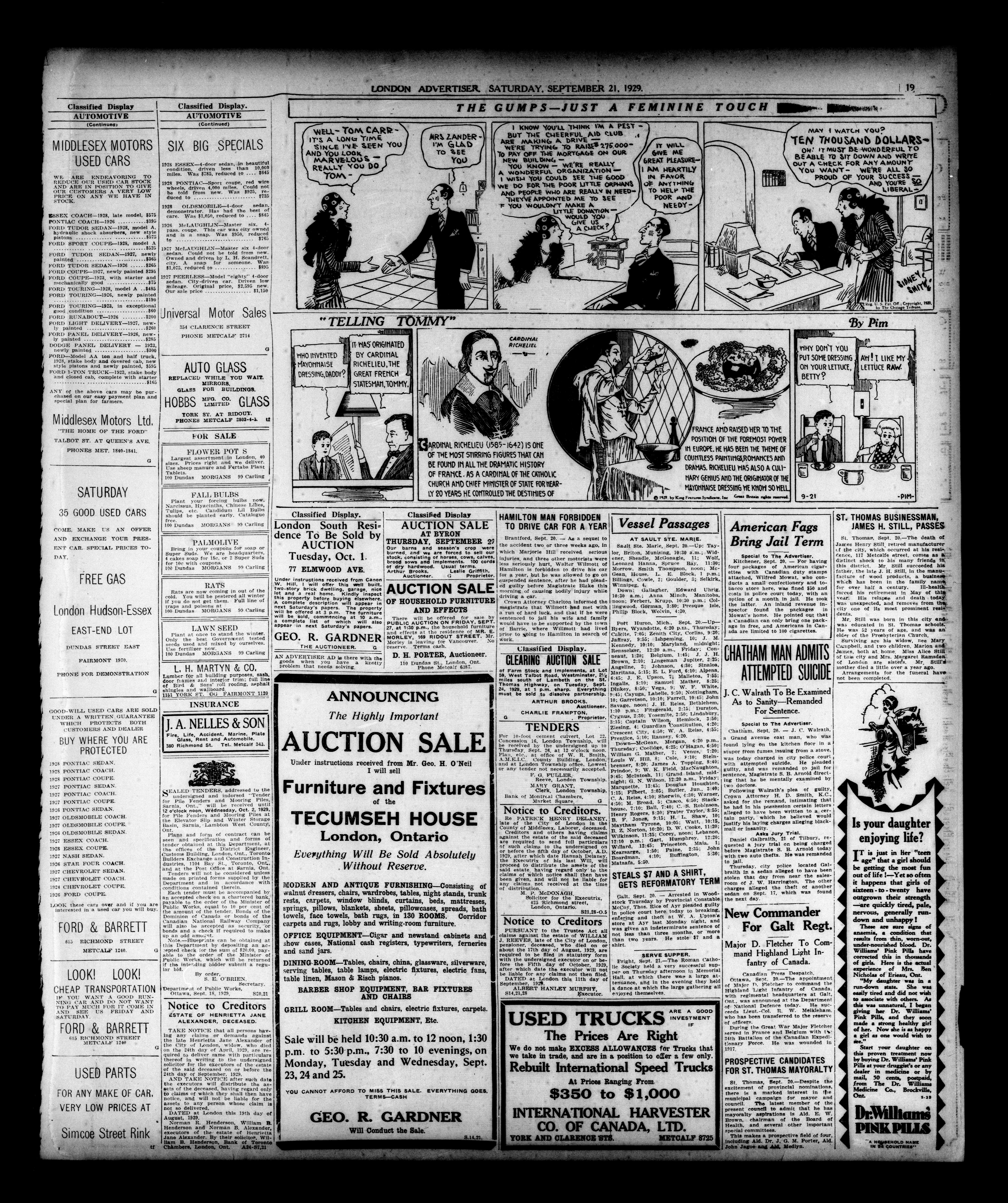 London, Ontario : London Advertiser Company, Limited, [1929]; 20 images, 0 avec recherche en texte intégral