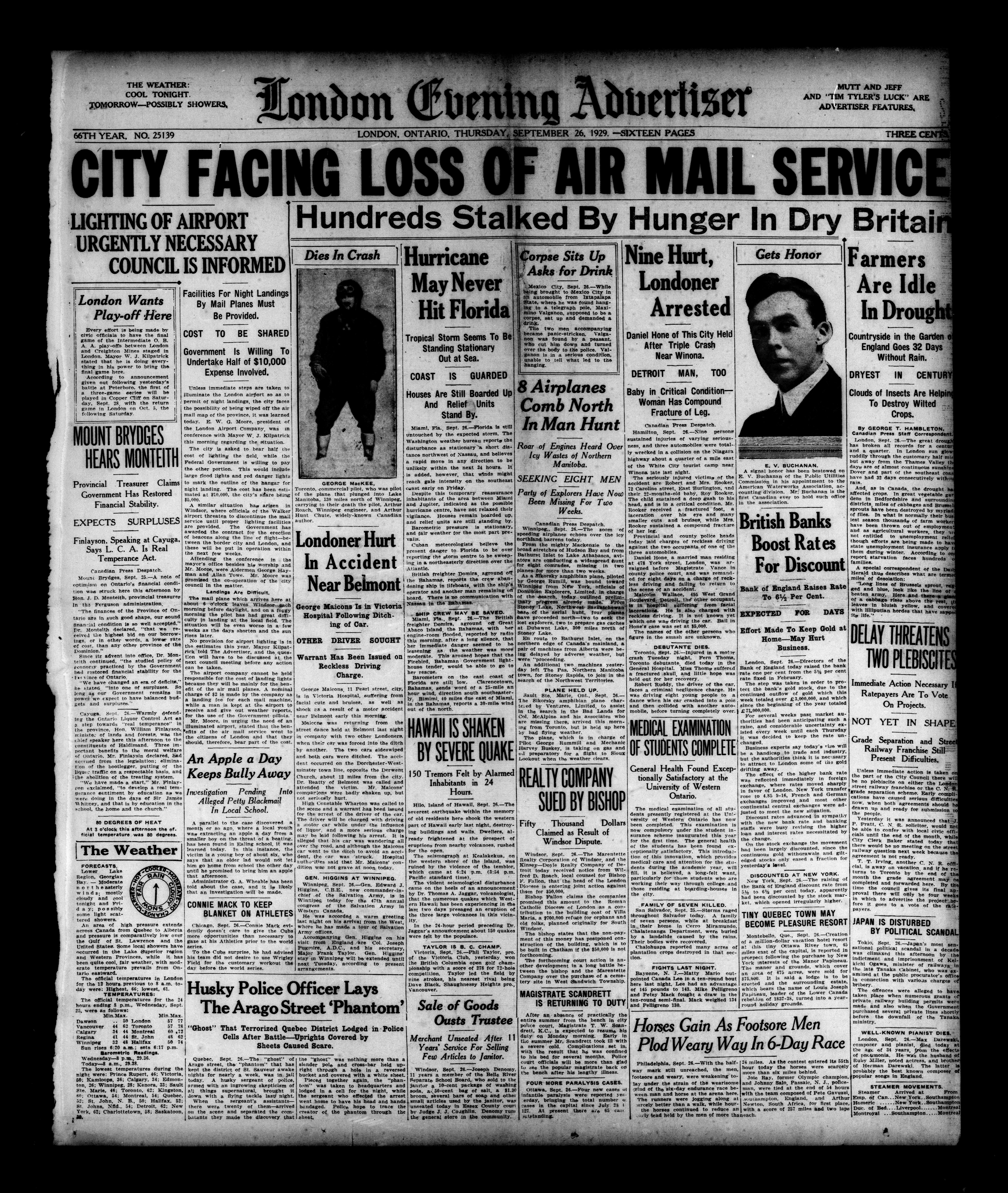 London Evening Advertiser. : London evening advertiser : 66th Year, No. 25139 (September 26, 1929)