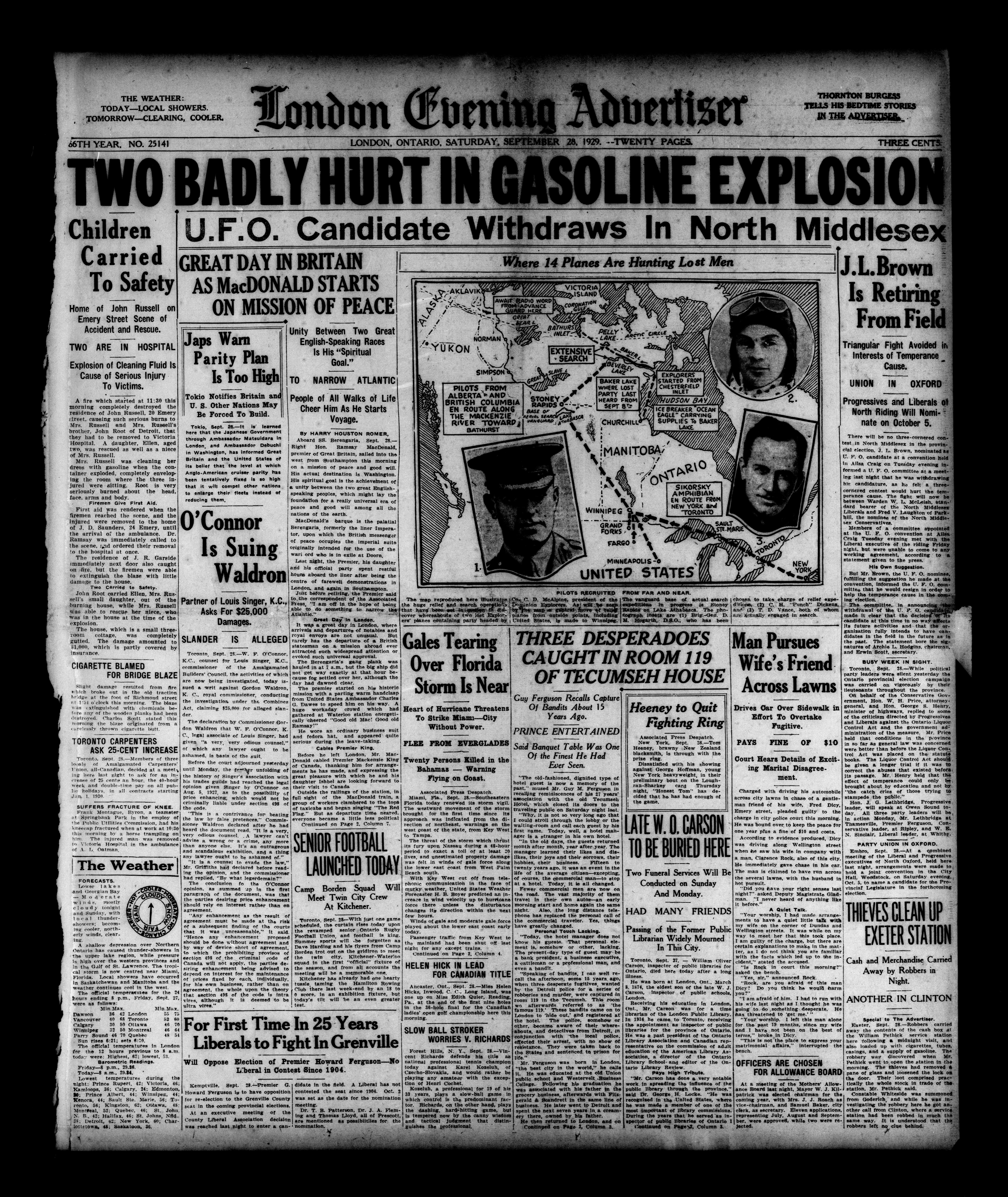 London, Ontario : London Advertiser Company, Limited, [1929]; 20 images, 0 avec recherche en texte intégral
