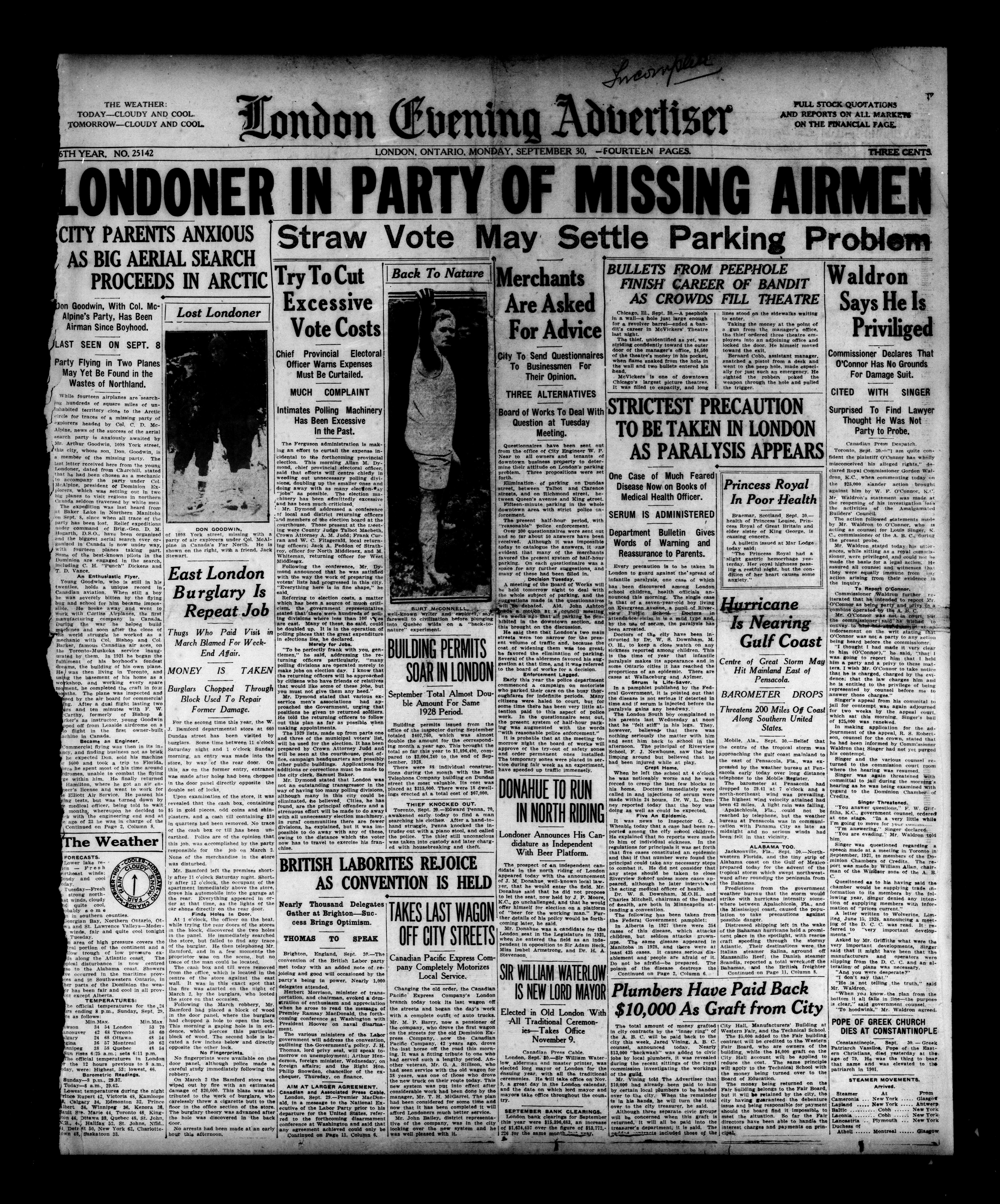 London, Ontario : London Advertiser Company, Limited, [1929]; 14 images, 0 avec recherche en texte intégral