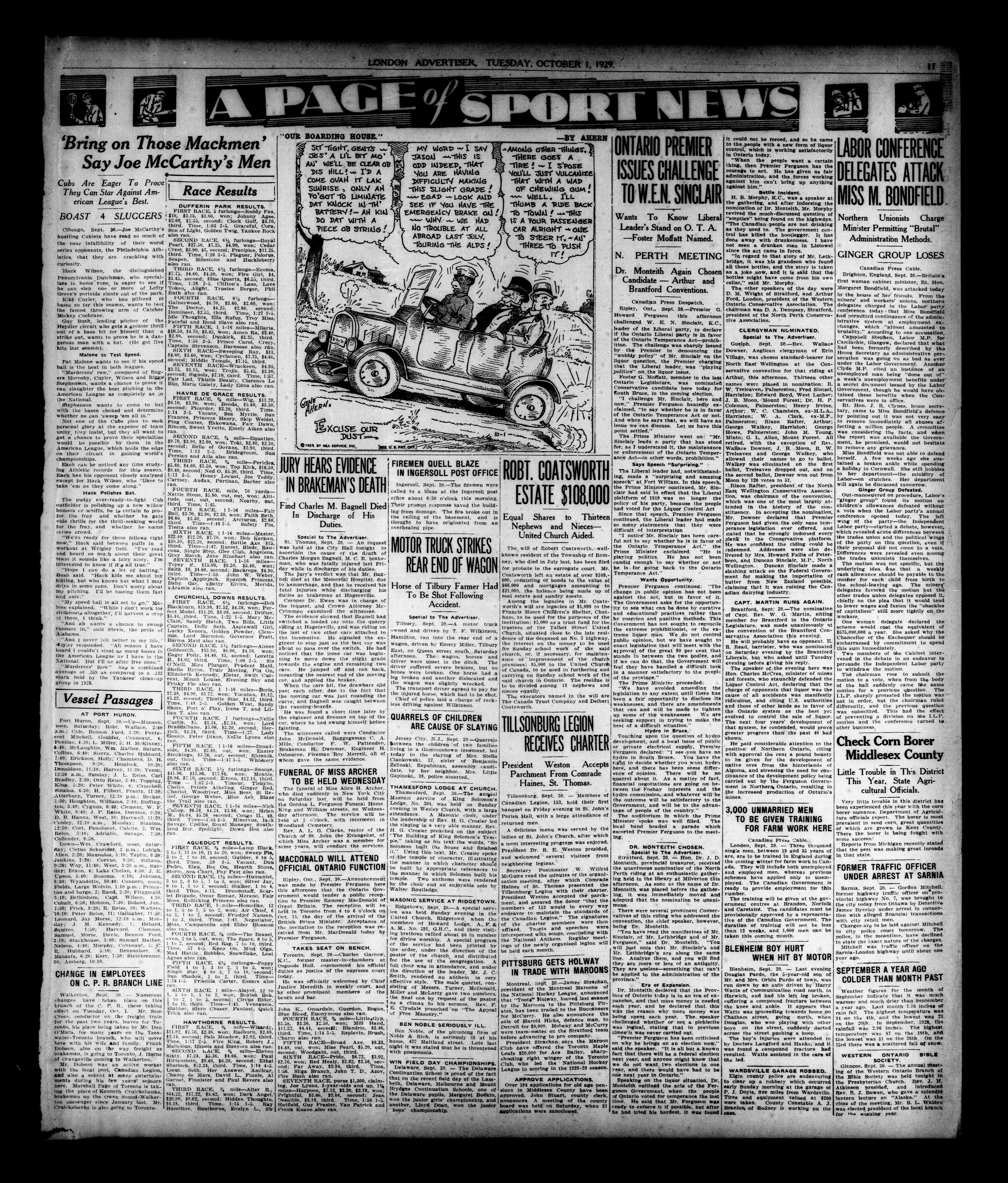 London evening advertiser : 66th Year, No. 25143 (October 1, 1929)