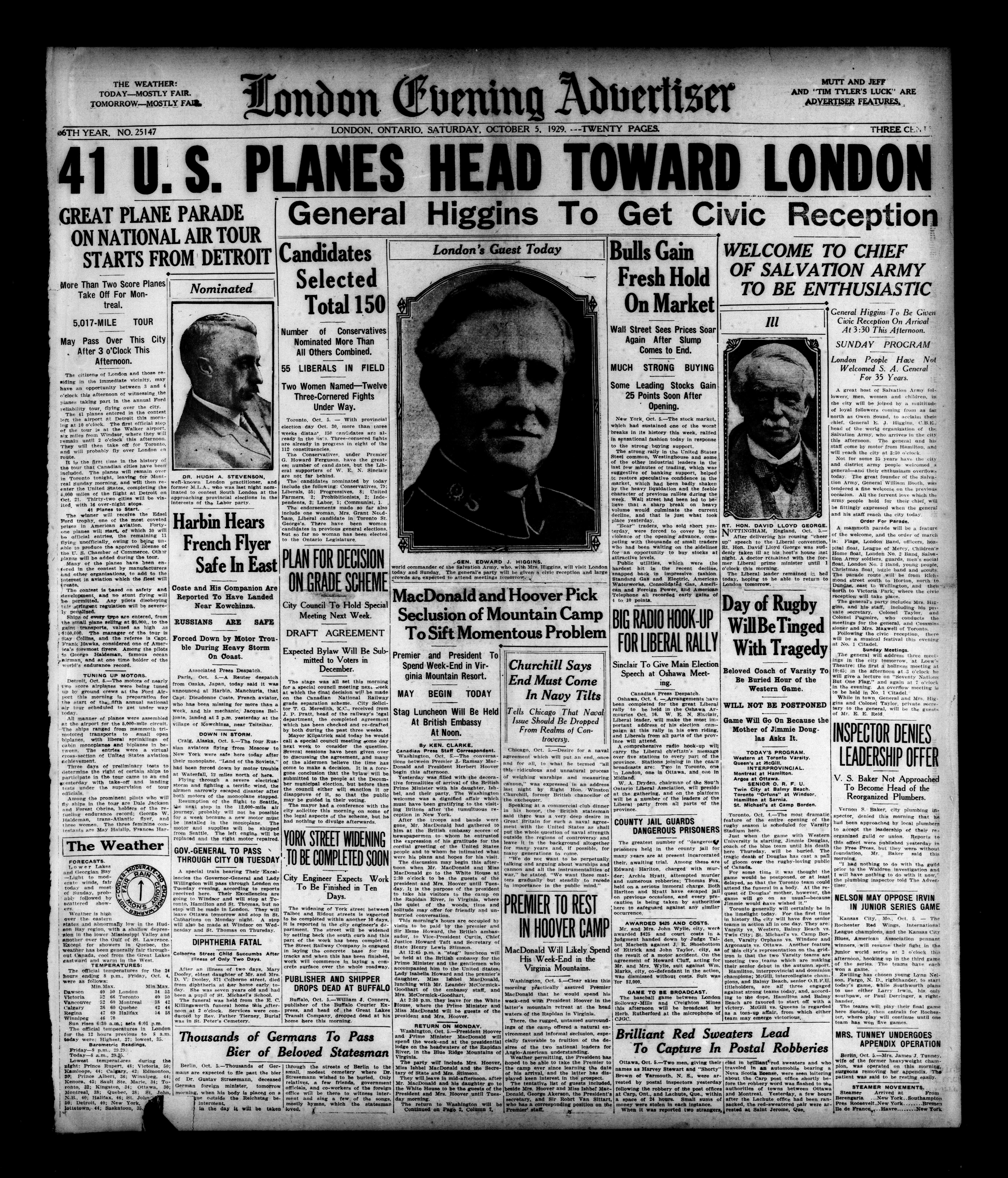 London evening advertiser : 66th Year, No. 25147 (October 5, 1929) - Adresse bibliographique