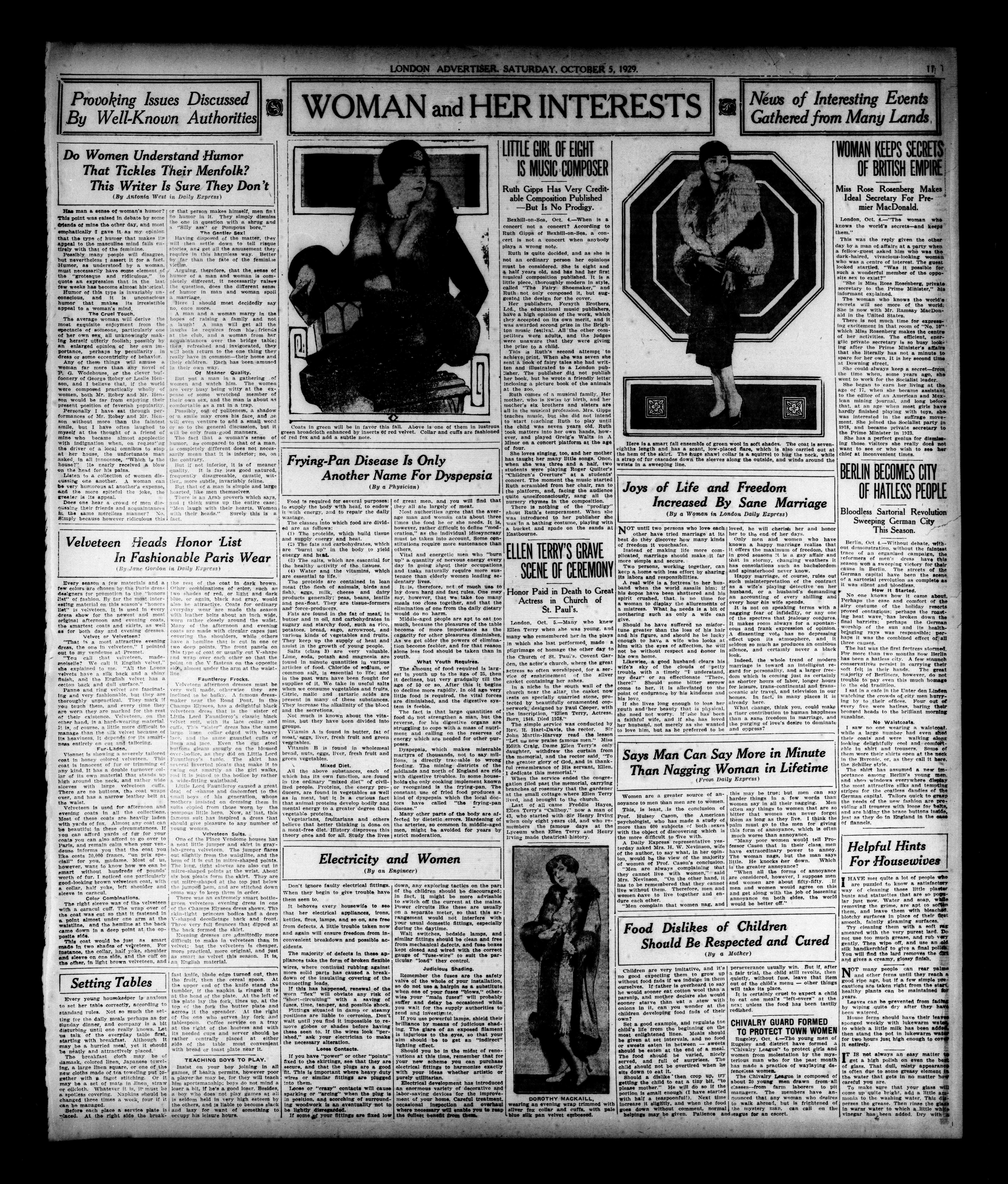 London, Ontario : London Advertiser Company, Limited, [1929]; 20 images, 0 avec recherche en texte intégral