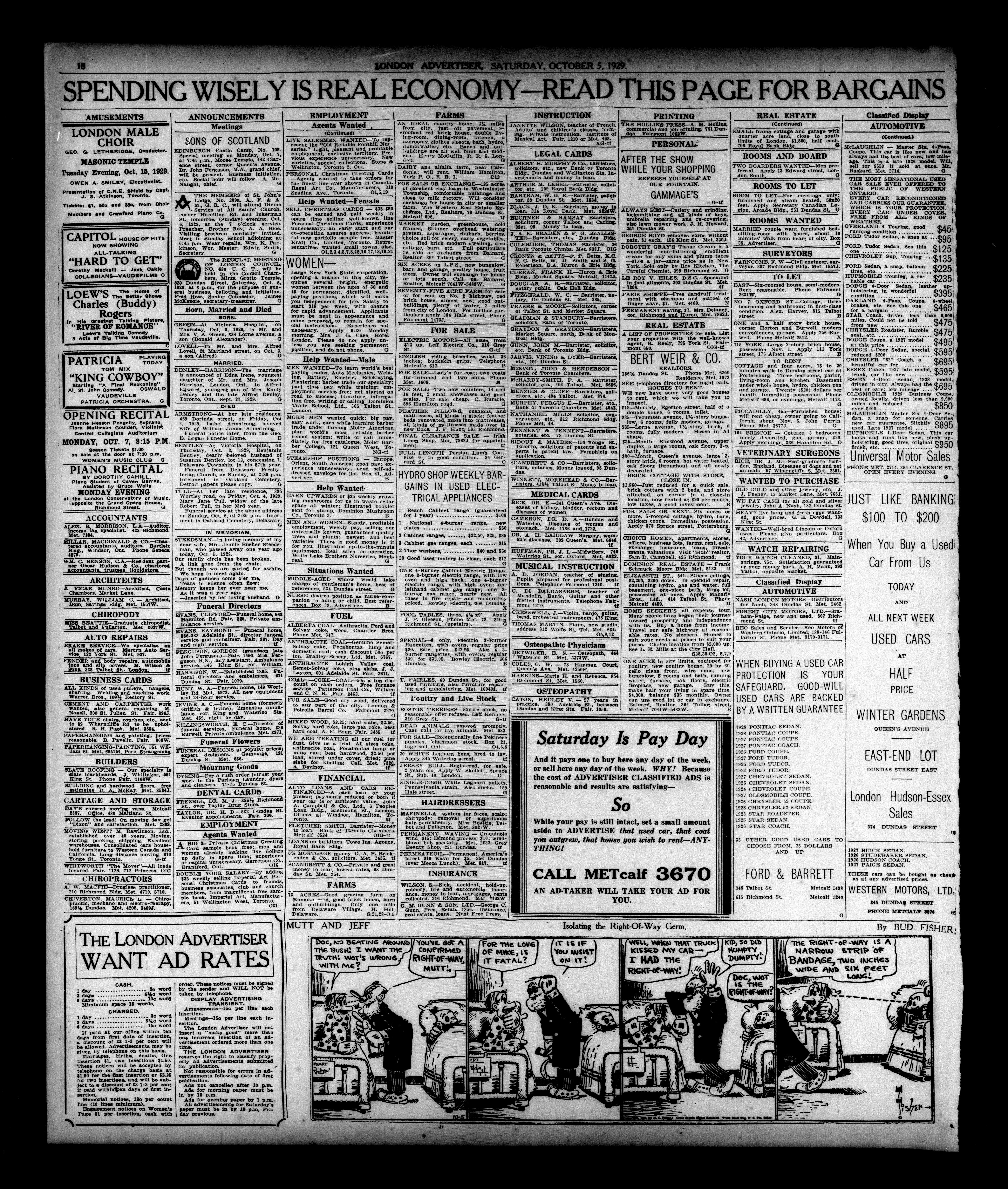 London, Ontario : London Advertiser Company, Limited, [1929]; 20 images, 0 avec recherche en texte intégral