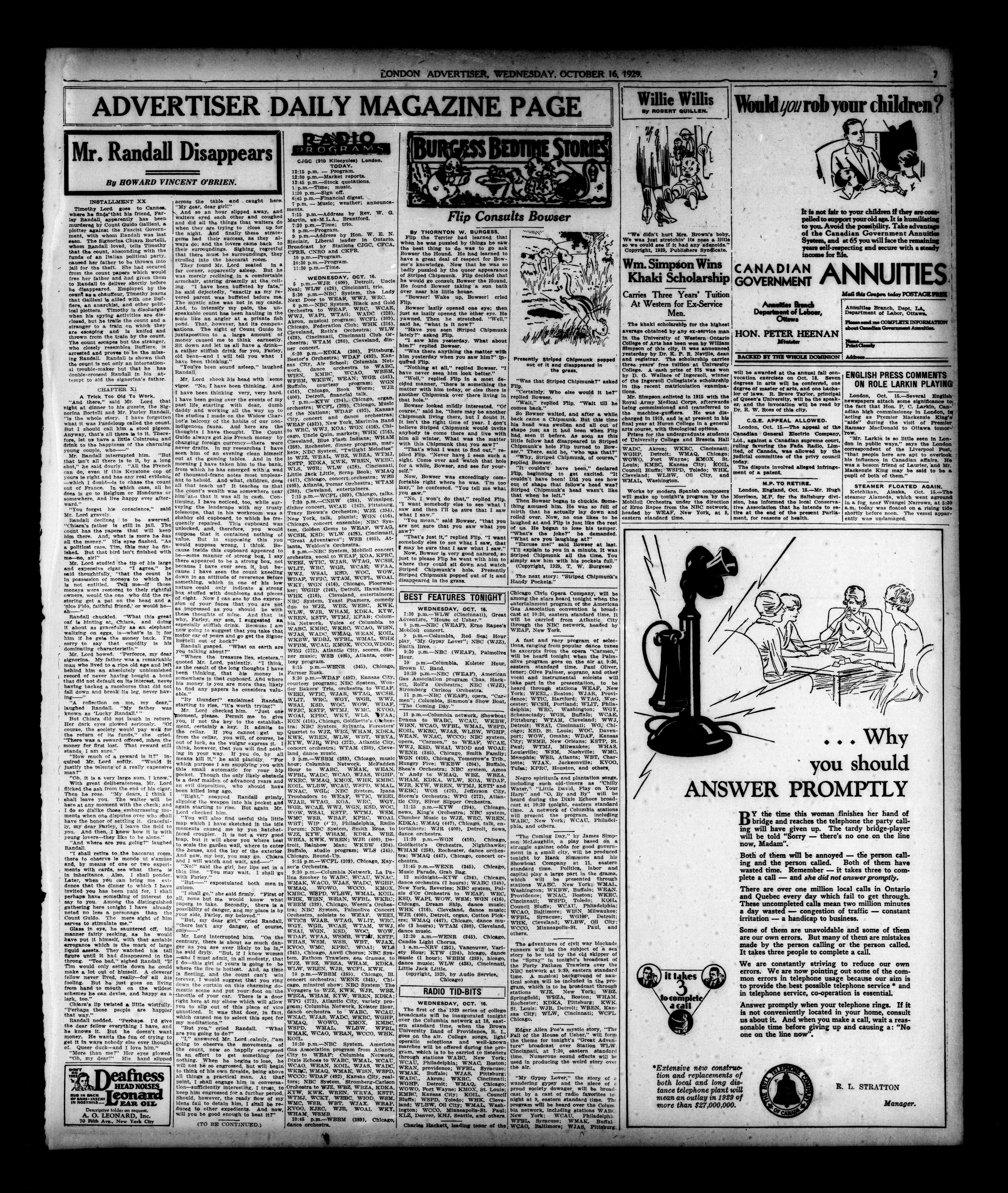 London, Ontario : London Advertiser Company, Limited, [1929]; 16 images, 0 avec recherche en texte intégral