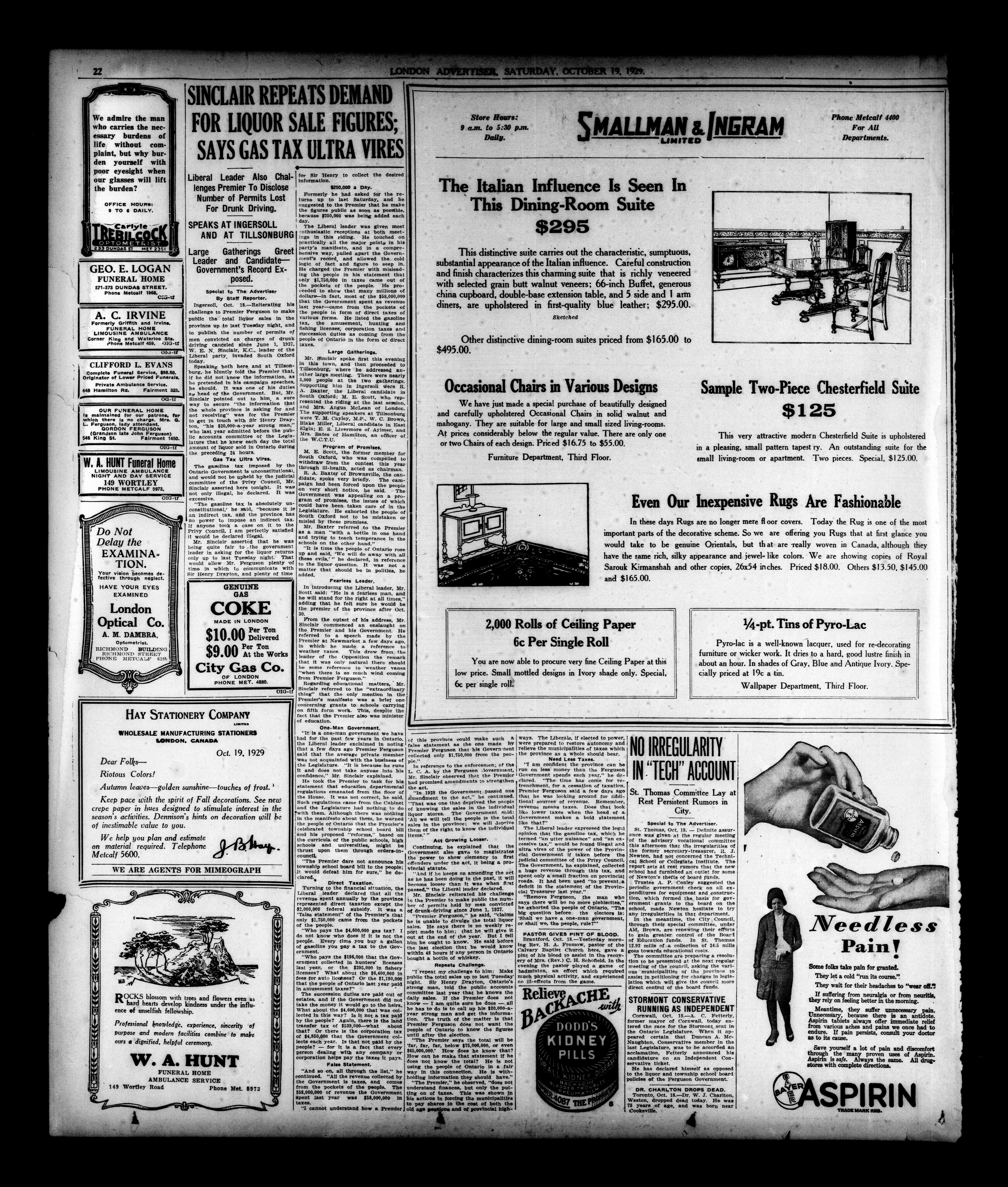 London, Ontario : London Advertiser Company, Limited, [1929]; 22 images, 0 avec recherche en texte intégral