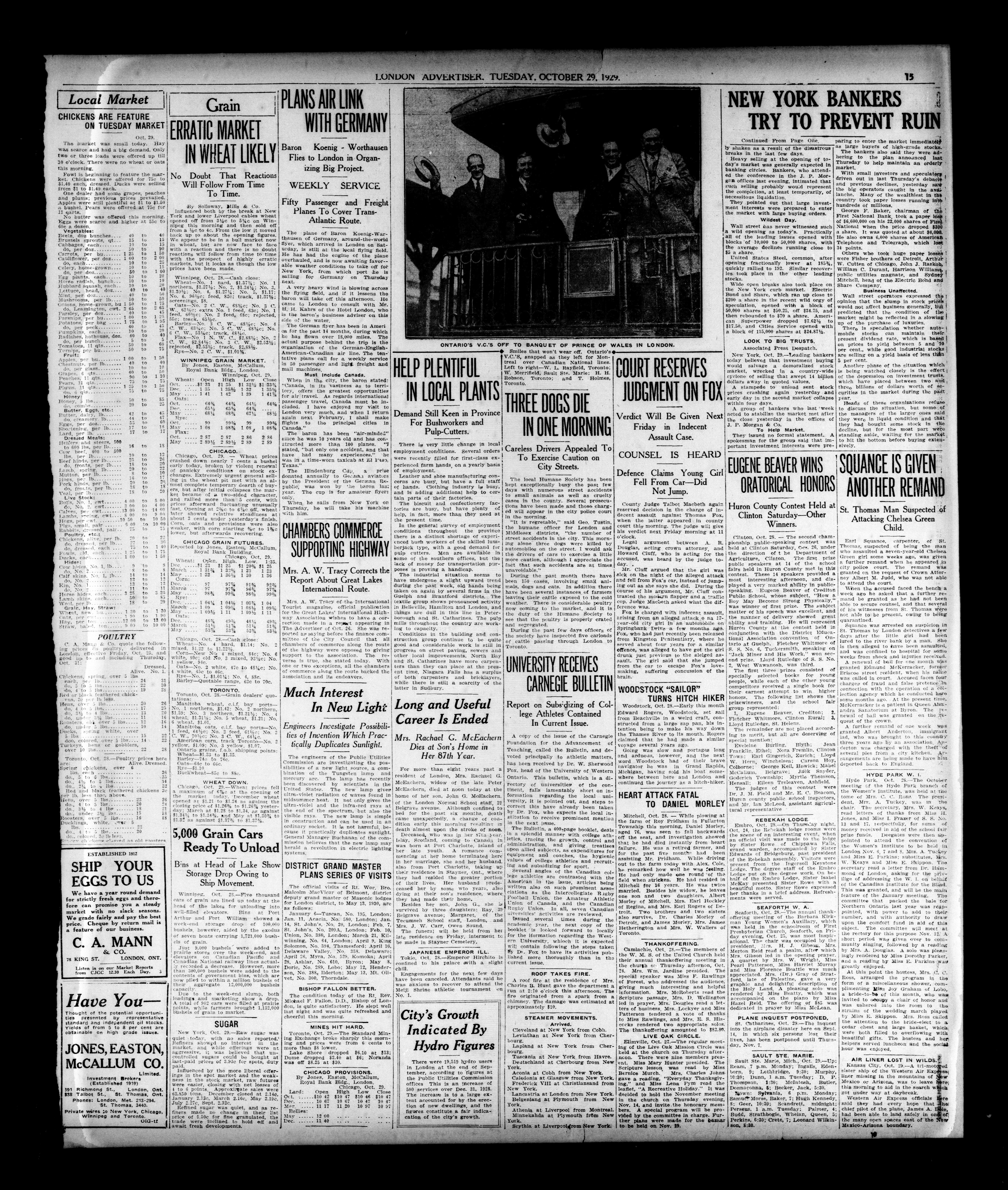 London evening advertiser : 66th Year, No. 25167 (October 29, 1929) - Published