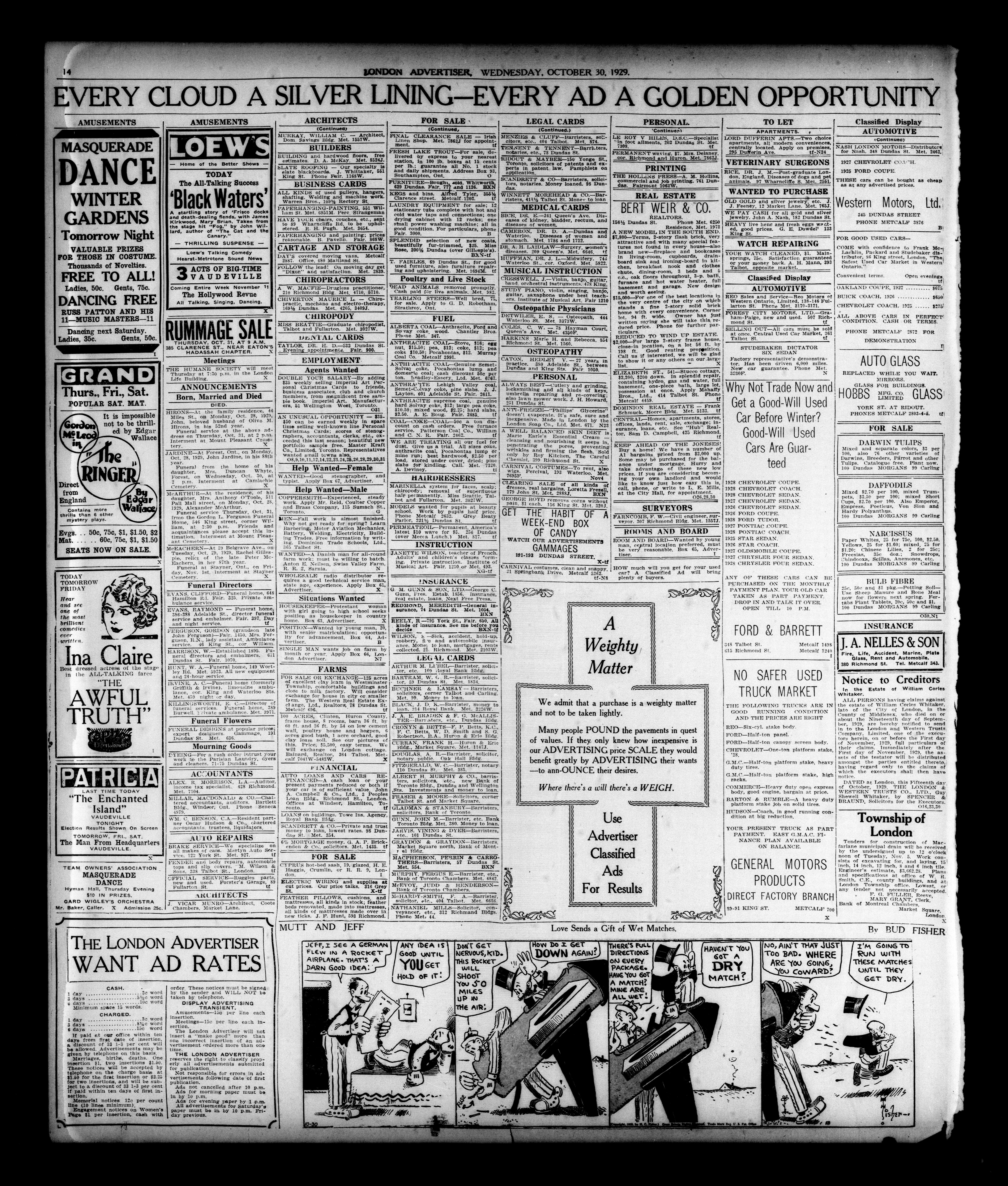 London evening advertiser : 66th Year, No. 25168 (October 30, 1929)