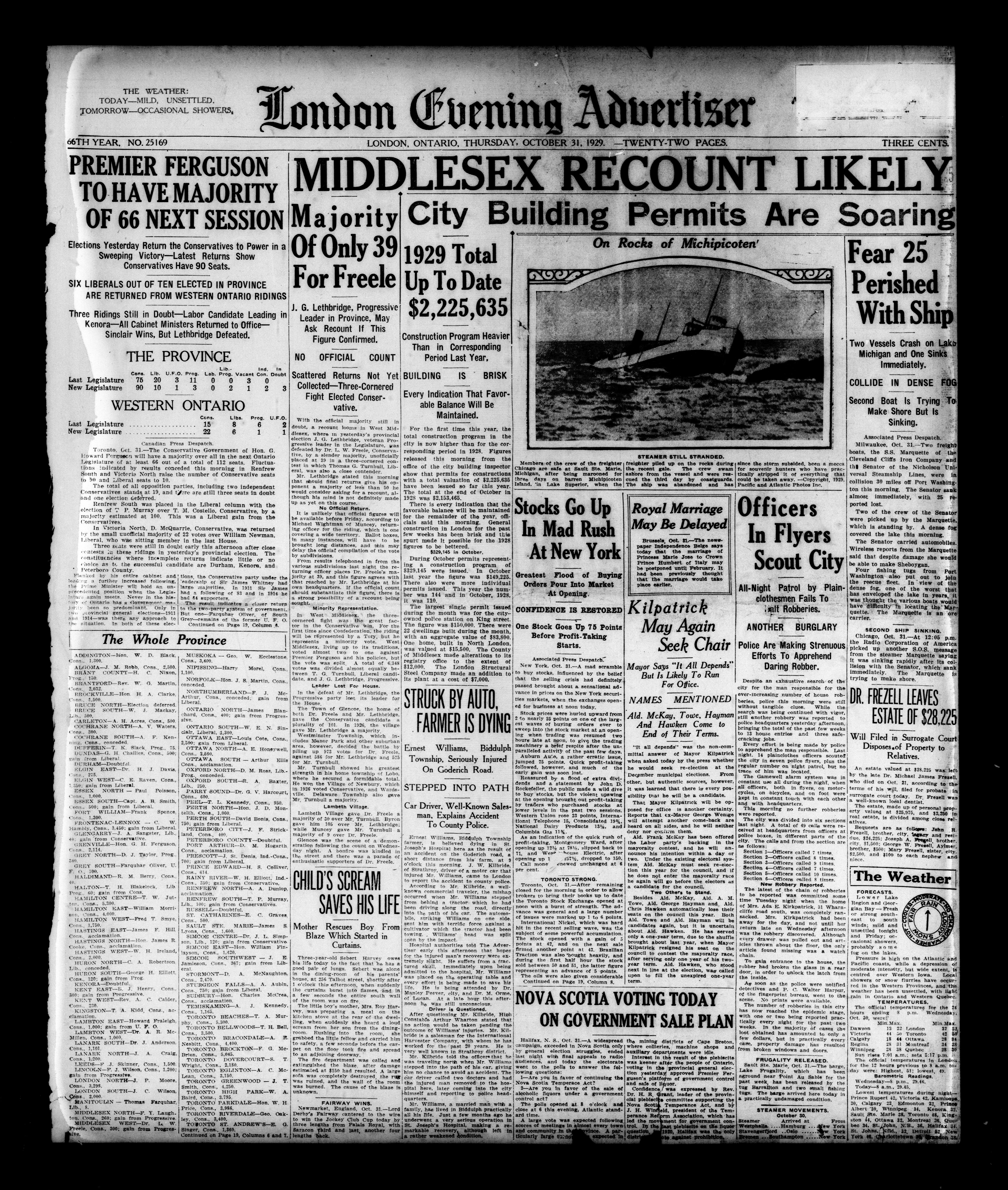 London, Ontario : London Advertiser Company, Limited, [1929]; 22 images, 0 avec recherche en texte intégral