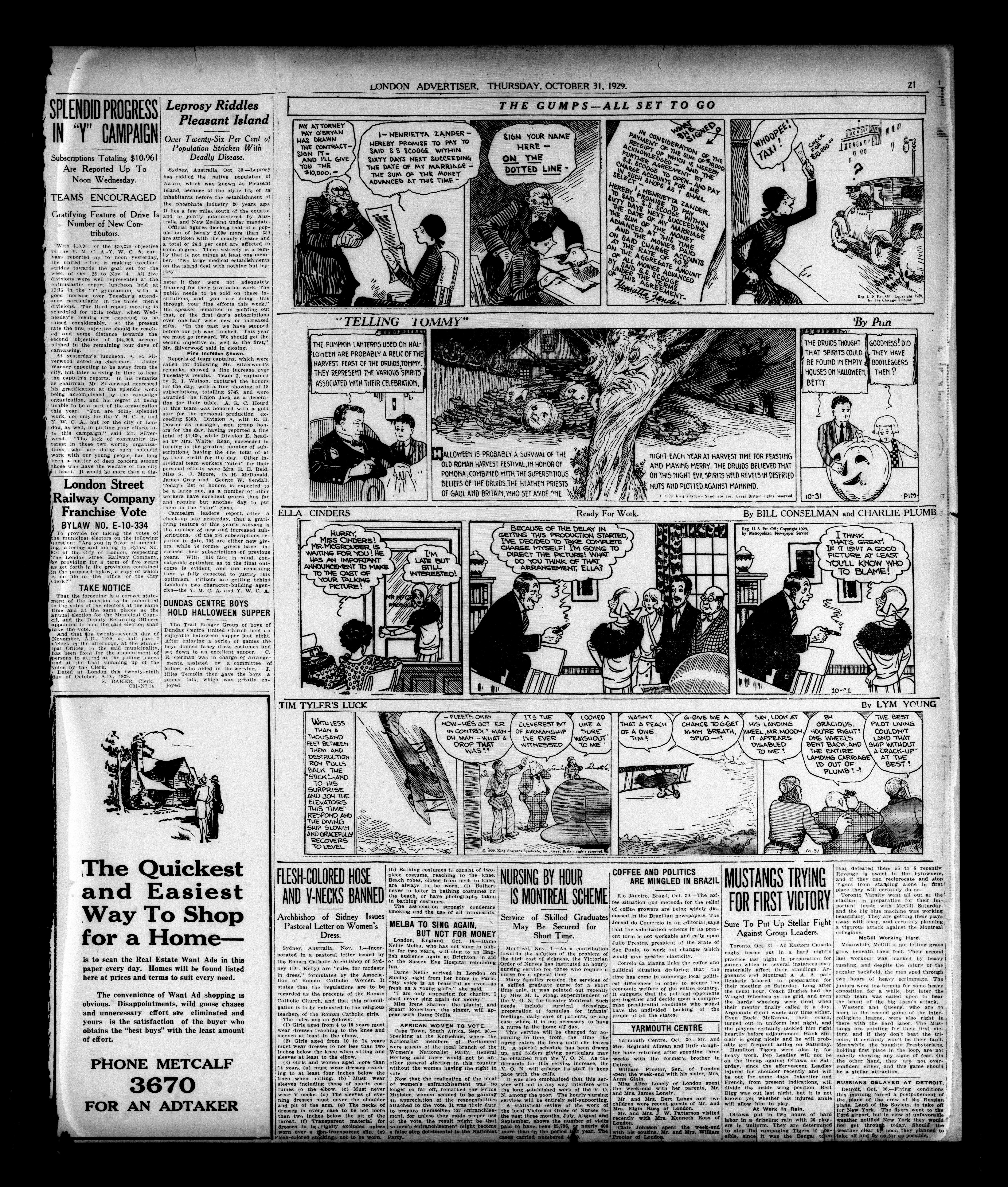 London, Ontario : London Advertiser Company, Limited, [1929]; 22 images, 0 avec recherche en texte intégral